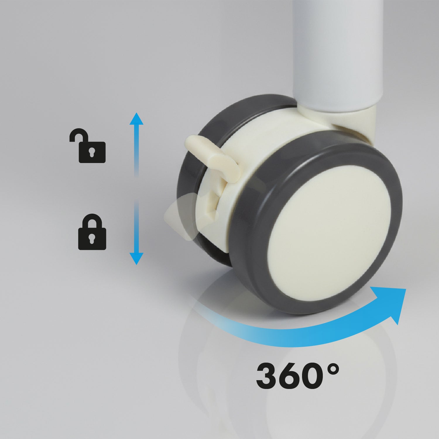 - Mobility thanks to 4 locking casters for easy movement and stable use