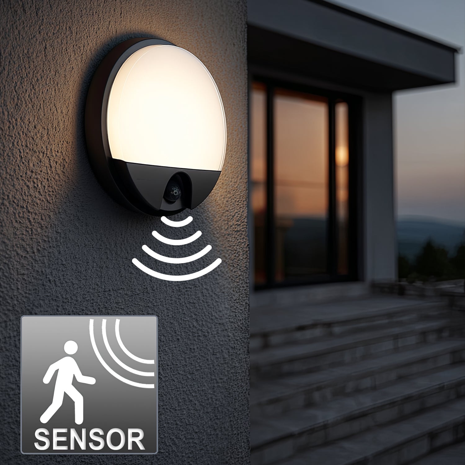 Infrared motion detector: ensures that the light is switched on automatically in a detection range of up to 9m and a detection angle of 140 °. The light lights up automatically as soon as someone is in the sensor area. After the set time (without motion detection), the motion detector switches the lights off again.