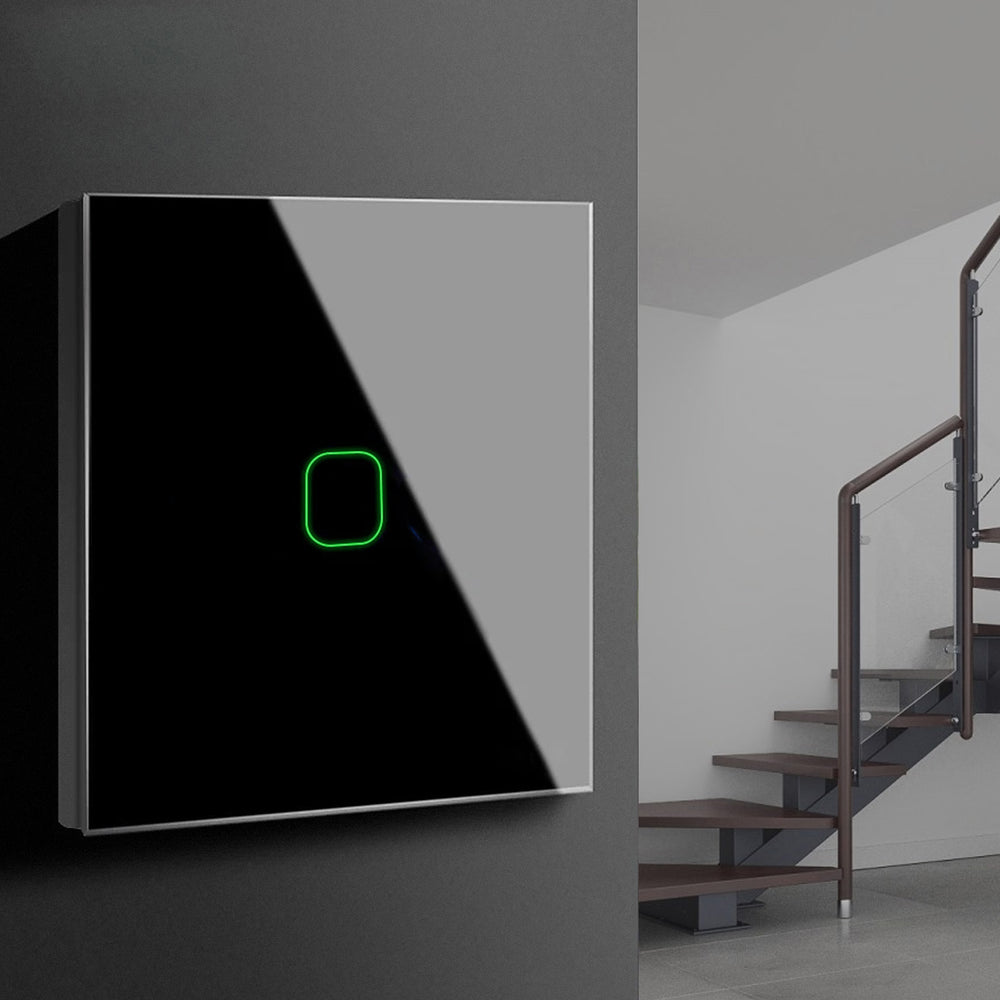 Maclean Energy MCE701B Touch light switch, single, glass, black with square button dimensions 86x86mm, with button illumination