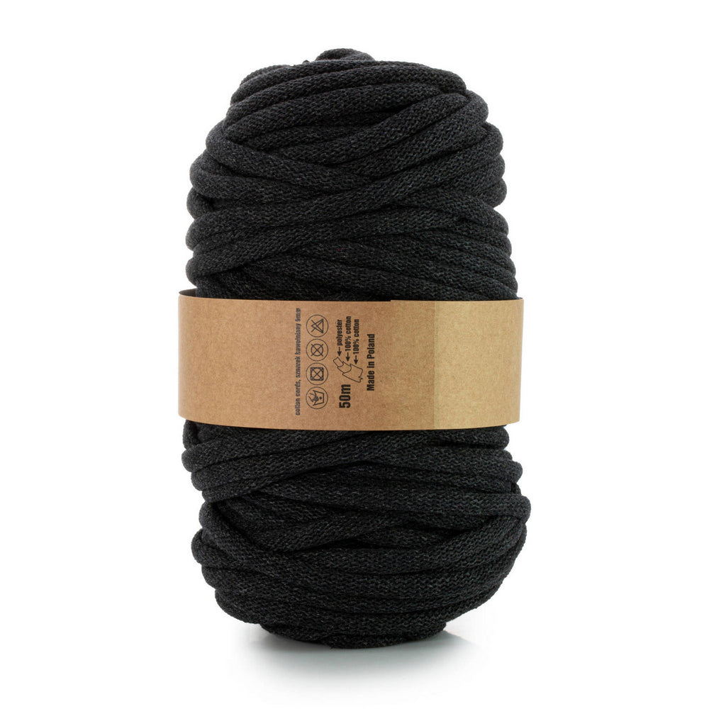 9mm braided cotton cord with a polyester core. This durable and stylish black cord spans 50m, perfect for various uses. Upgrade your projects with reliability.