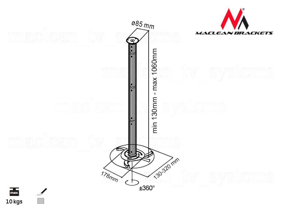 Maclean MC-582 Universal Projector Ceiling Mount max. 20kg Tilting -15° / +15° High Quality