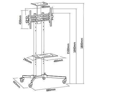 Maclean MC-661 Trolley TV Stand with Mounting Bracket and 2 Shelfs
