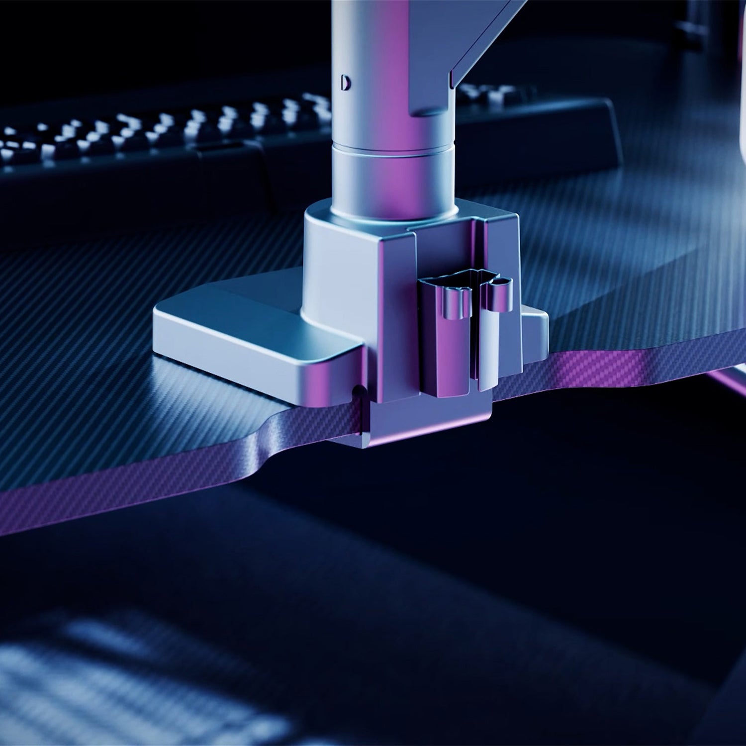 The desk is designed with ergonomics in mind. A cutout in the back of the desktop allows easy installation of a monitor holder. Importantly, thanks to this solution, even after installing the bracket, the desk can be moved close to the wall, saving valuable space in the room. Rounded corners increase safety, especially in heavily used gaming spaces.