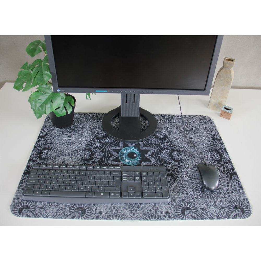 Bertoni's felt desk pad, sized at 50x70 cm, presents an intriguing Enigma design, blending sophistication with practicality for your workspace.
