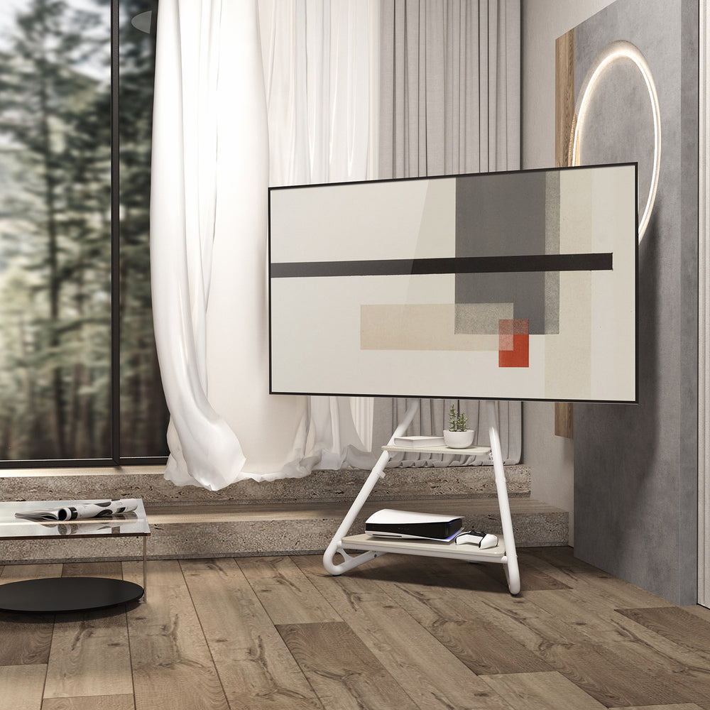 Maclean TV stand / cart, camera shelf, on casters, 55-100", max load 120kg/10kg shelf, max. VESA 900x600, white, MC-114 W
