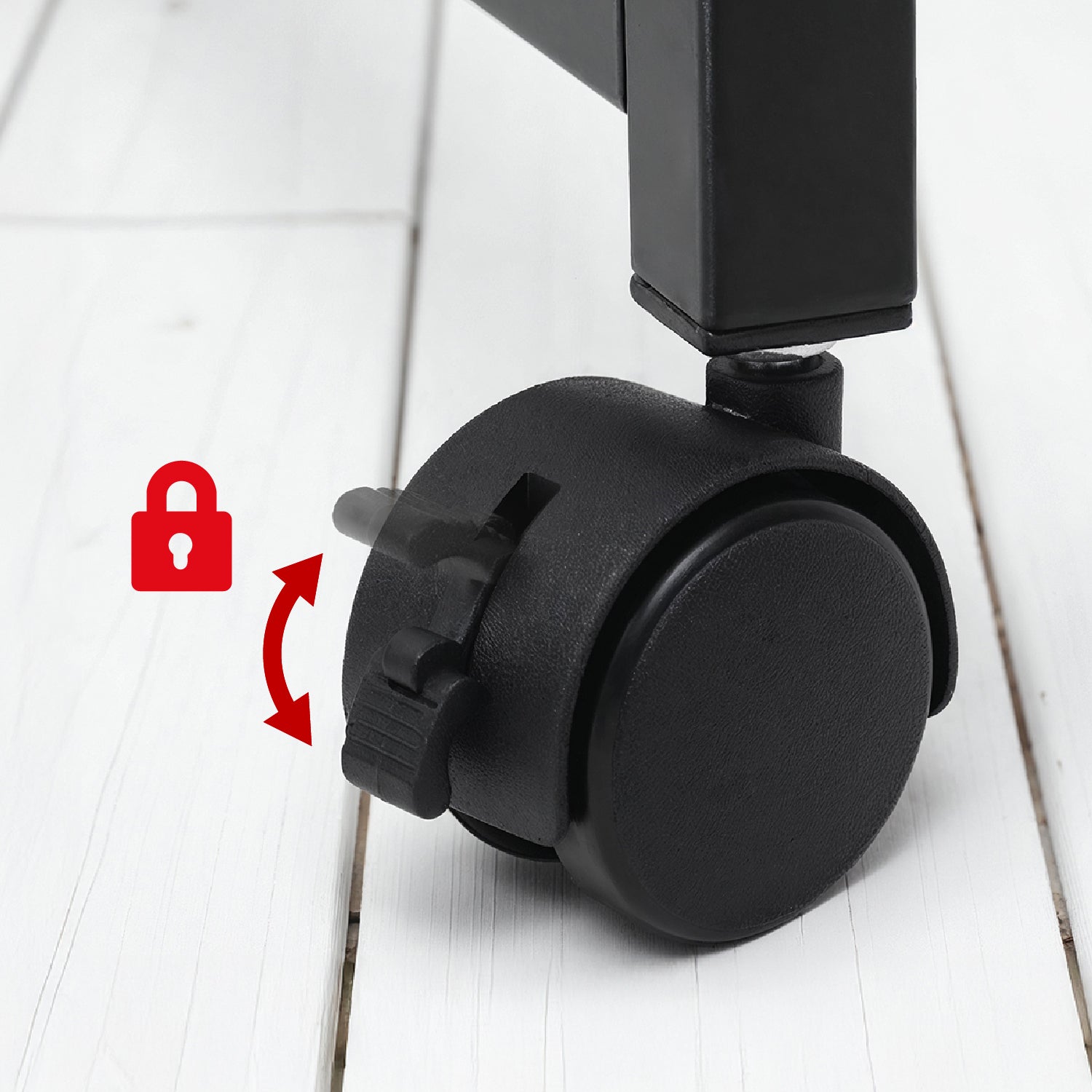 - Six casters with a lock for mobility and stable positioning of the desk