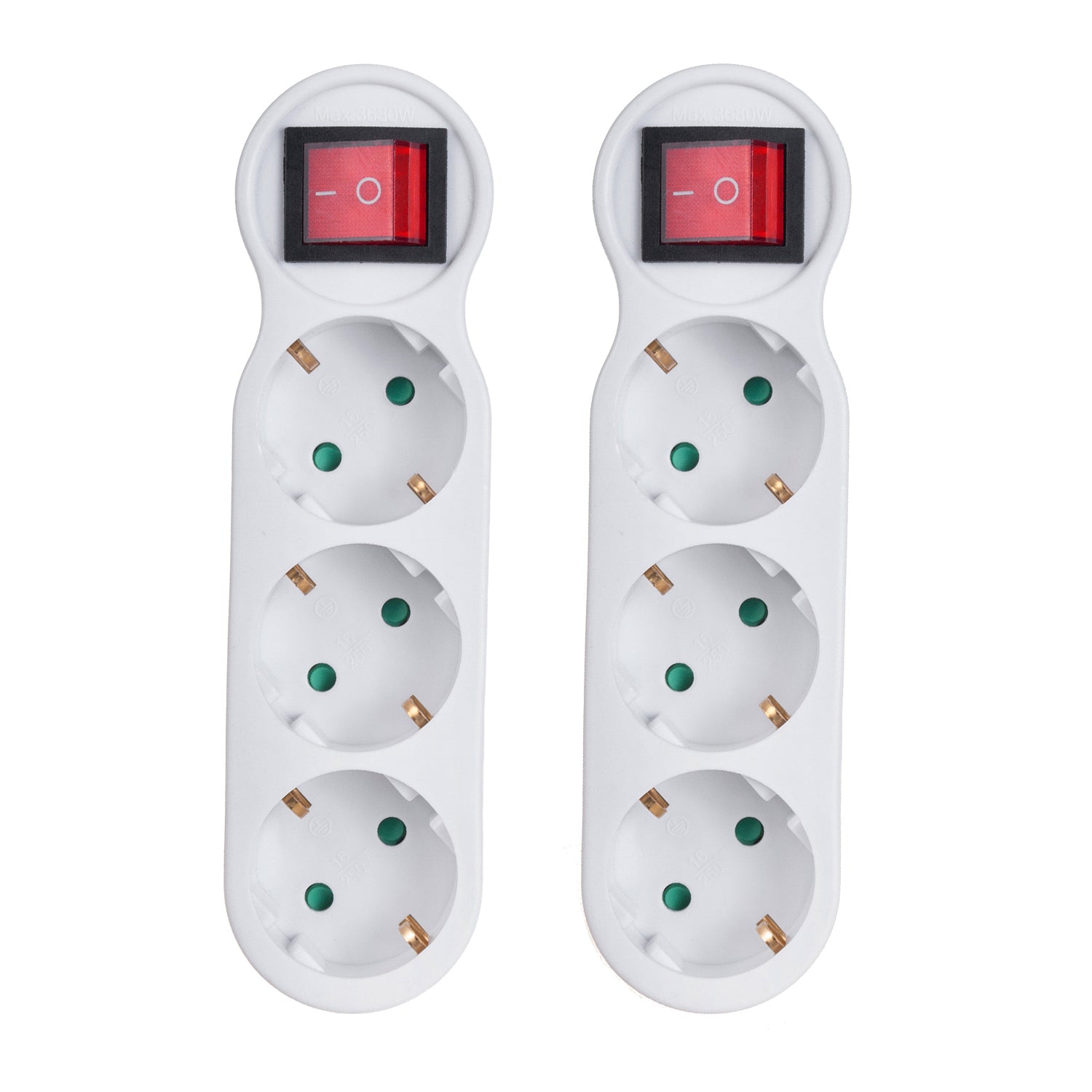 2x Maclean current outlet, triple, with switch and ground, 16A, German version, MCE216
