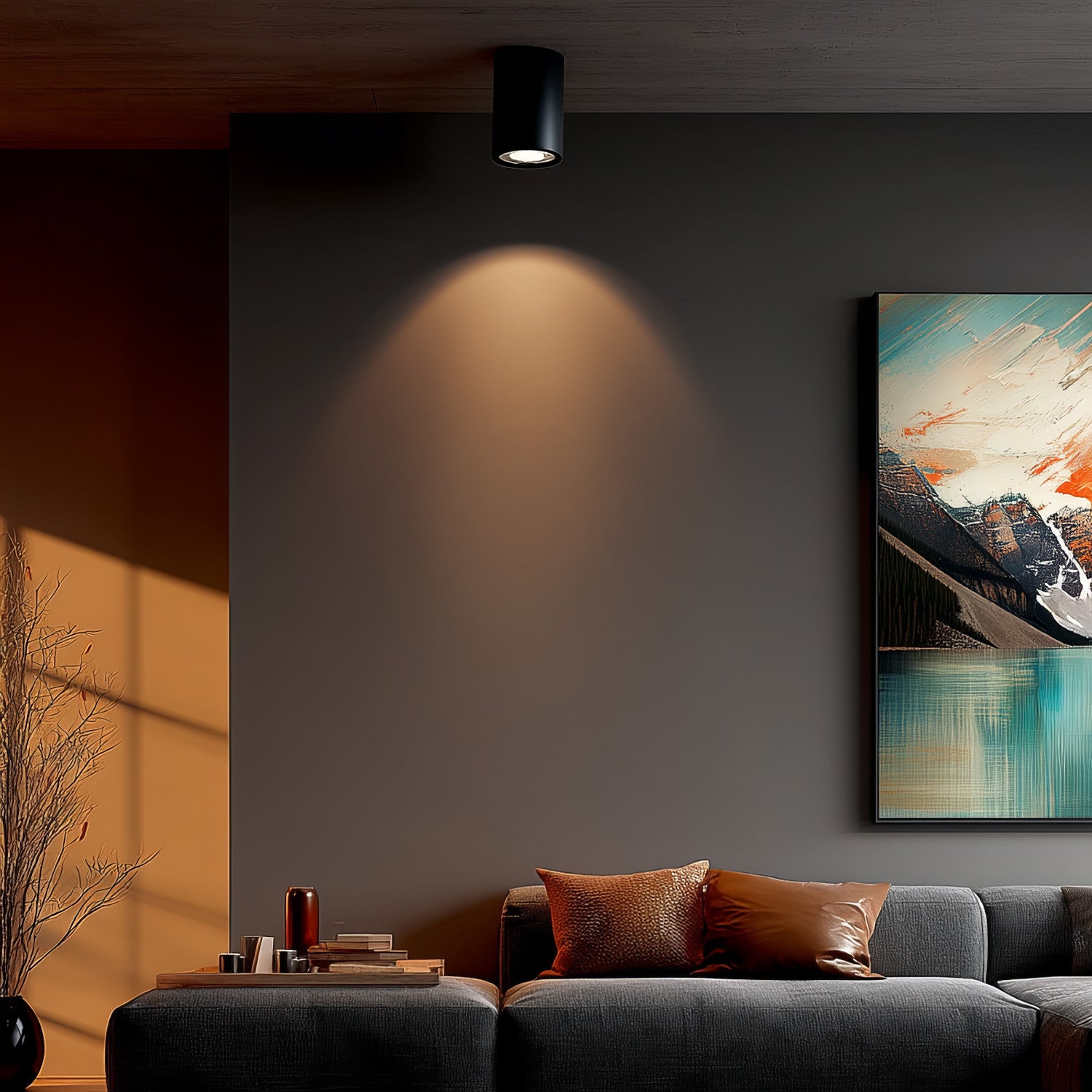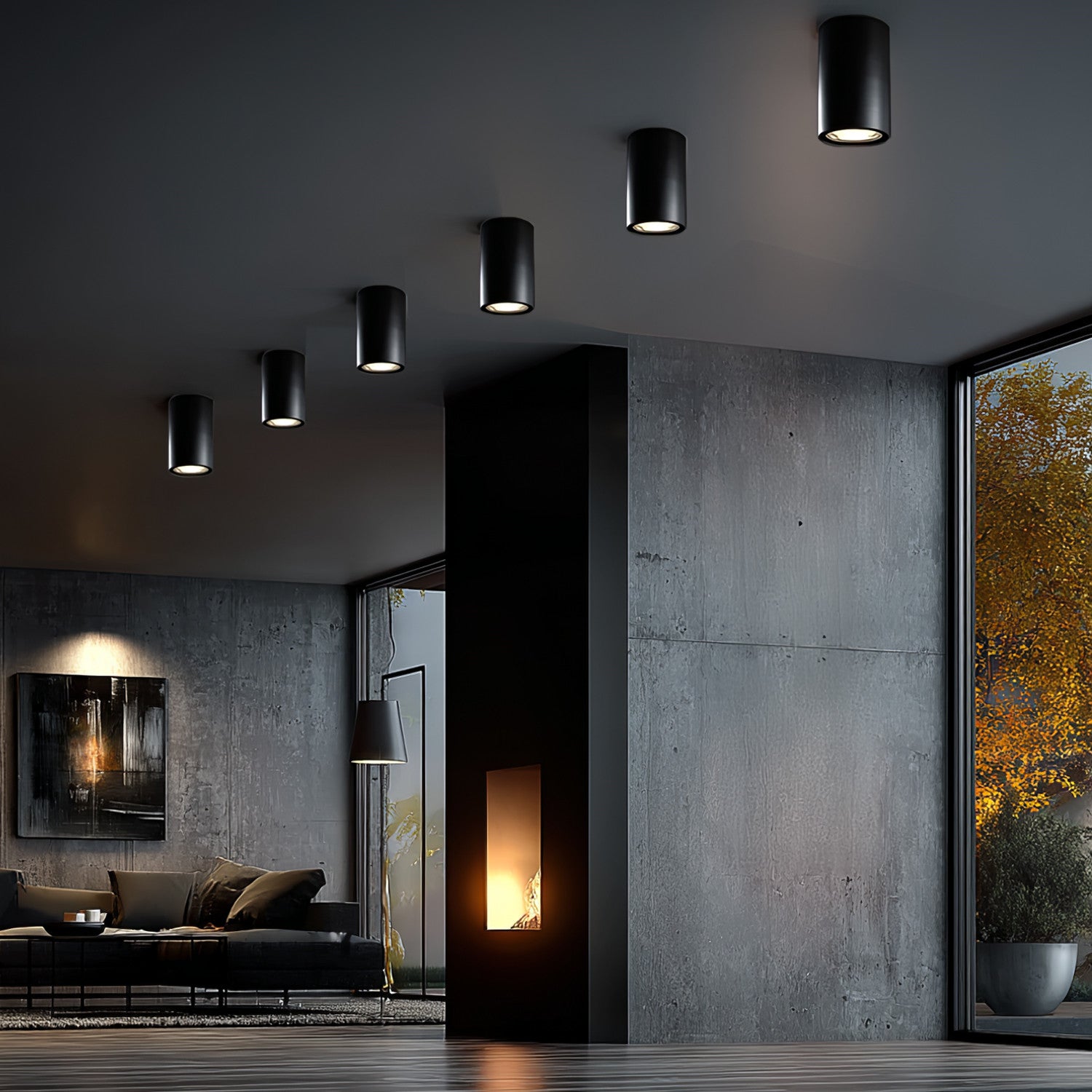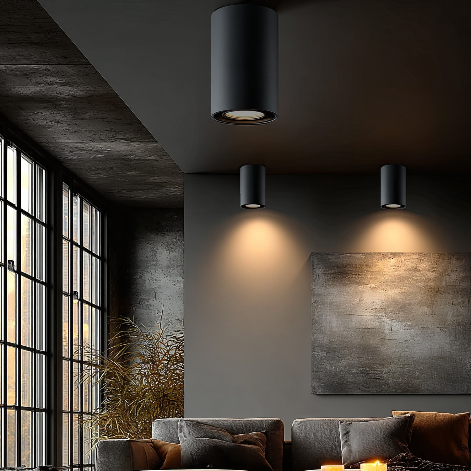 - Surface mounted aluminum ceiling luminaire for LED and halogen bulbs
