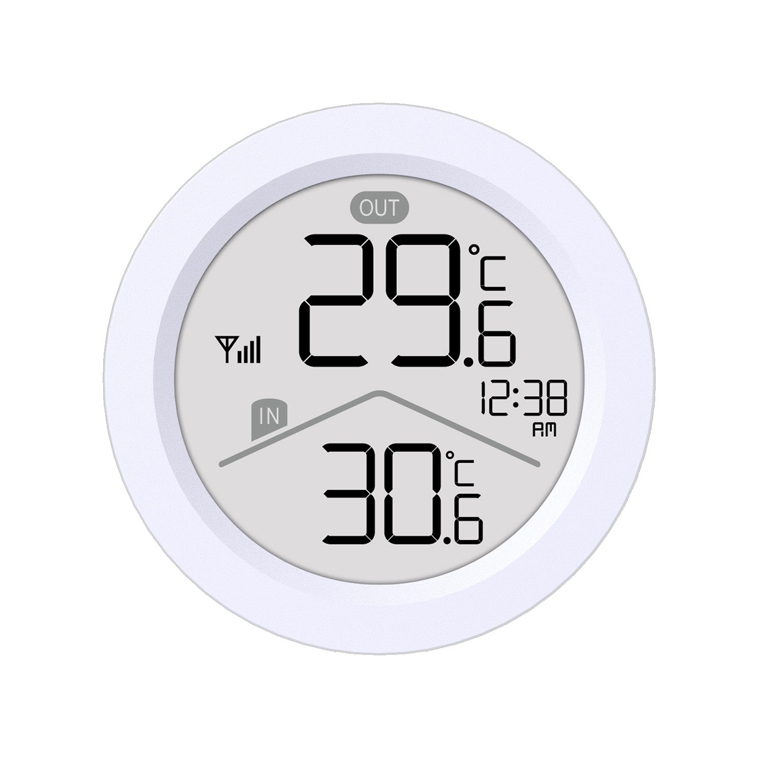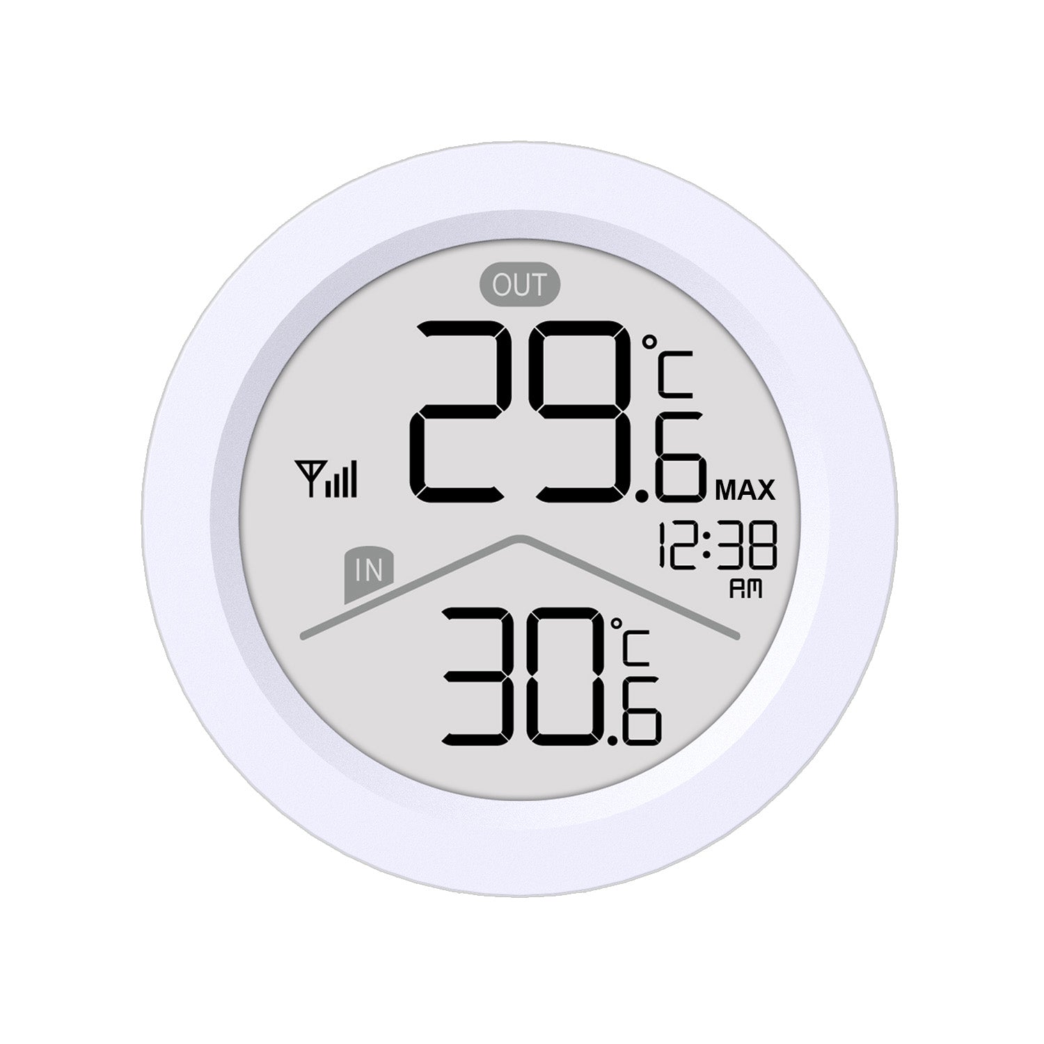 - The weather station allows you to display both indoor and outdoor temperatures simultaneously, enabling you to monitor conditions inside and outside the building in real time.- The wireless outdoor temperature sensor with IP44 protection ensures reliable operation in outdoor conditions and is splash-proof. - The sensor can be placed on a flat surface or hung thanks to the built-in mounting hole, allowing you to easily adjust the installation method to the measurement location.- The large and easy-to-read LCD display ensures quick and convenient data reading thanks to clear digits and a transparent information layout. - The maximum and minimum temperature recording function with automatic reset at midnight and manual reset option facilitates daily observations.- Stable radio transmission at a frequency of 433.92 MHz and a range of up to 60 meters allows for flexible placement of the sensor relative to the base station.- The compact size of the station (85 mm in diameter) means that the device does not take up much space and fits into any interior