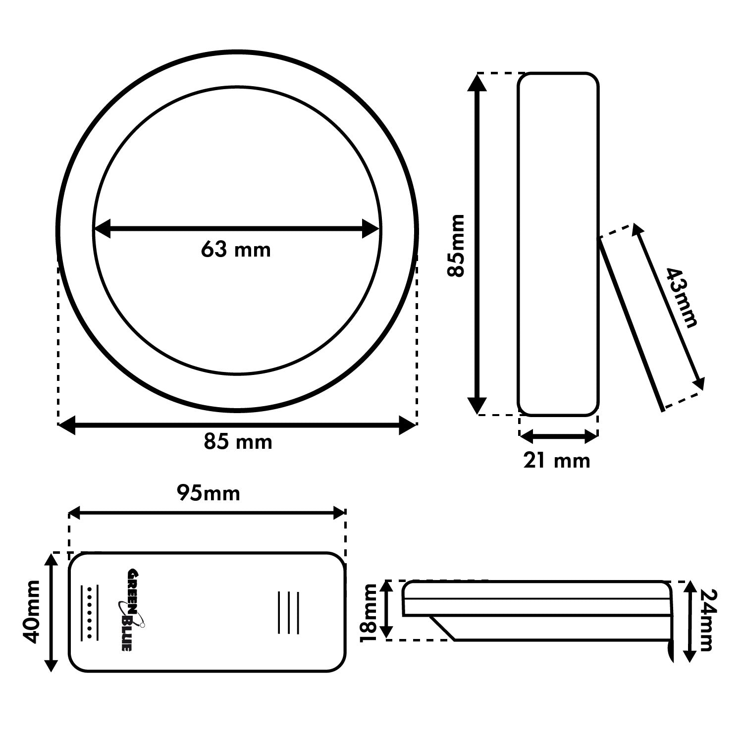 - Total diameter: 85 mm