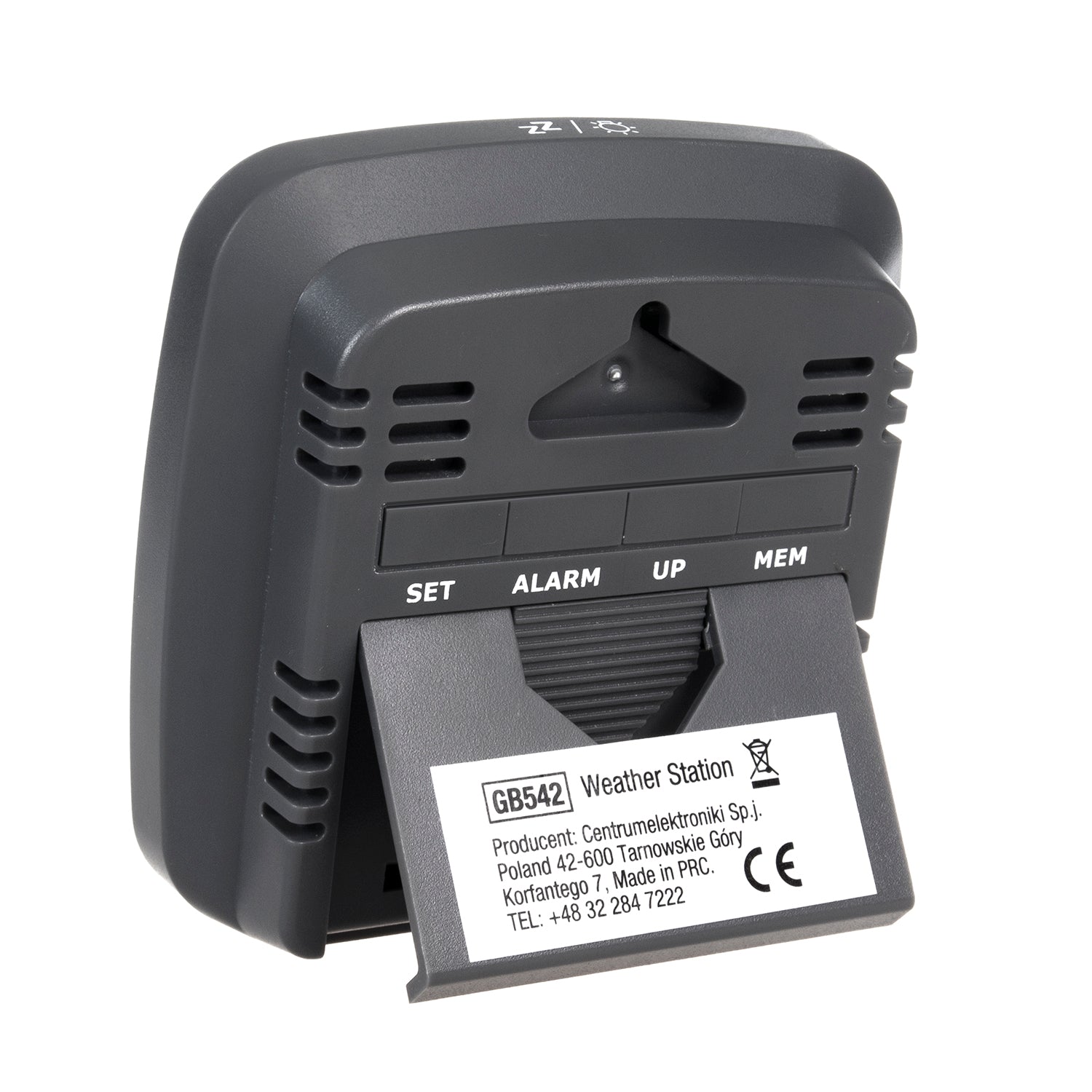 An additional advantage of the GB542 station is the built-in alarm clock with snooze function and the ability to set a dual alarm. This means that you can set two different wake-up times - for example, one for yourself and one for another person or for a different time of day. This is a simple, yet extremely practical solution that makes daily organization easier and makes the weather station a multifunctional part of your interior.