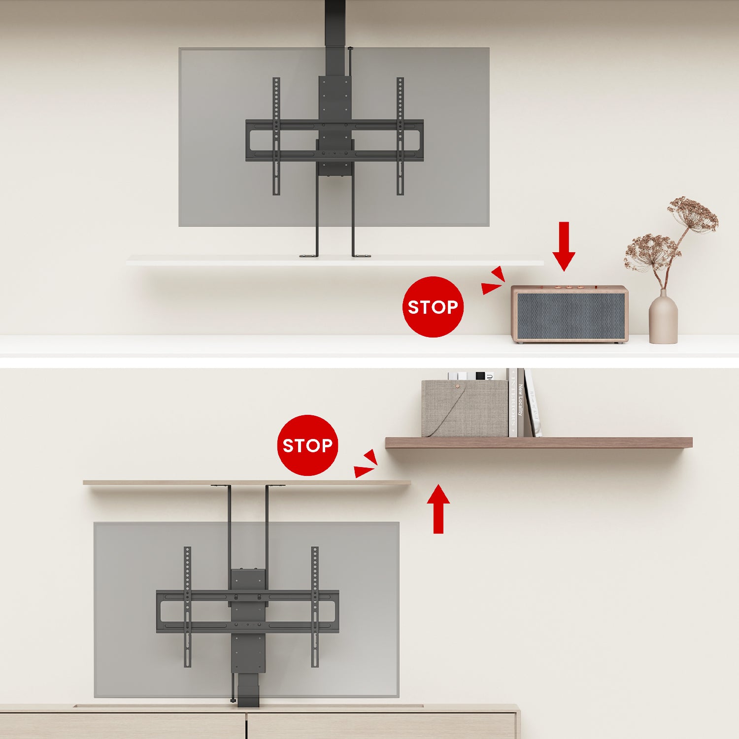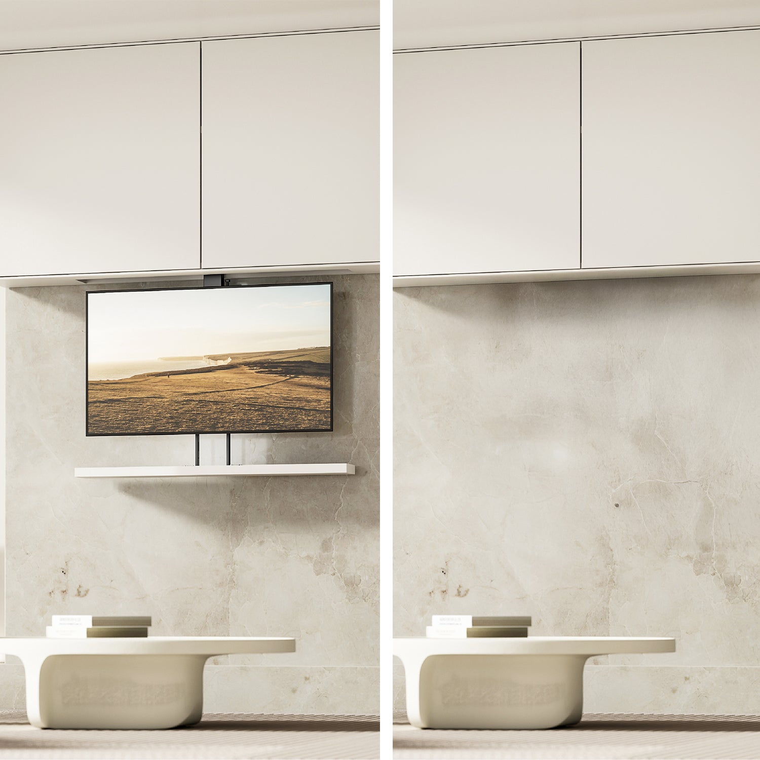 - The mount allows you to elegantly hide your TV in the cabinet, pulling it out only when you need it