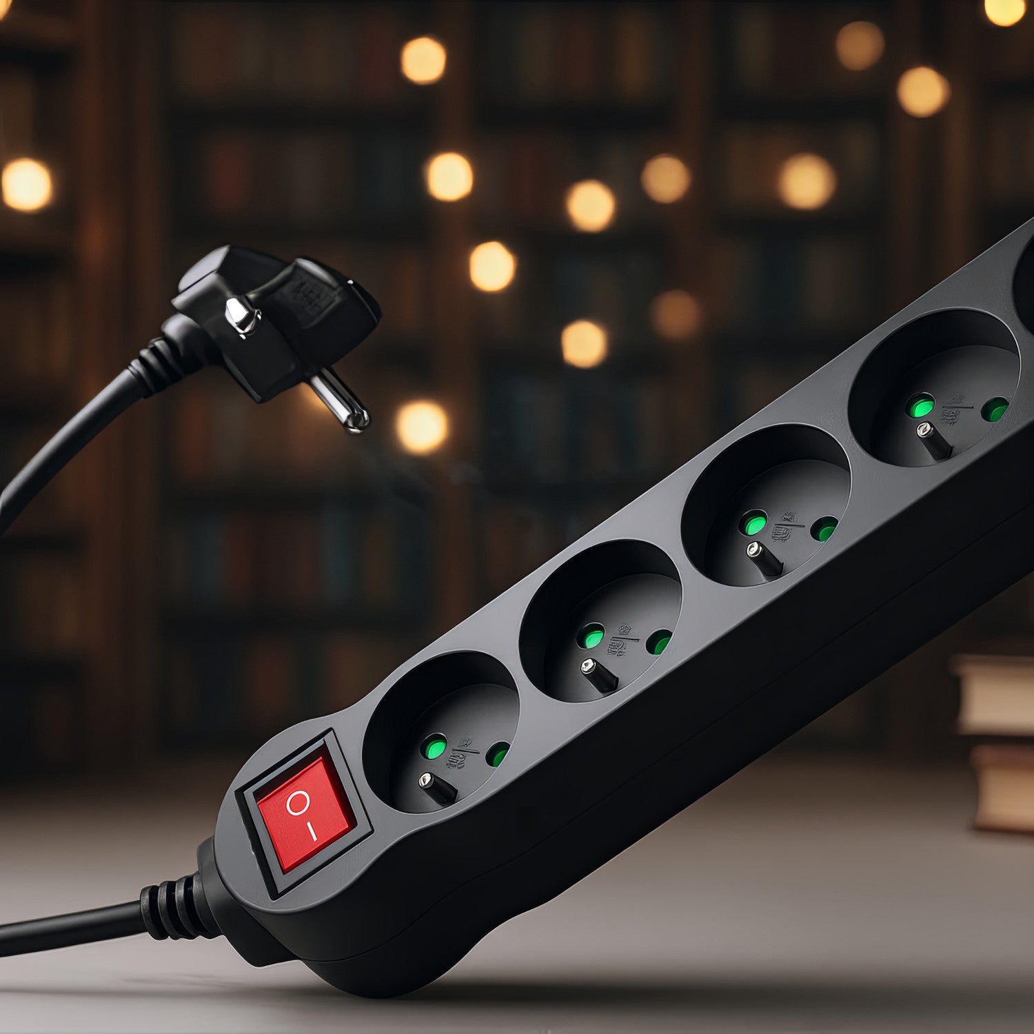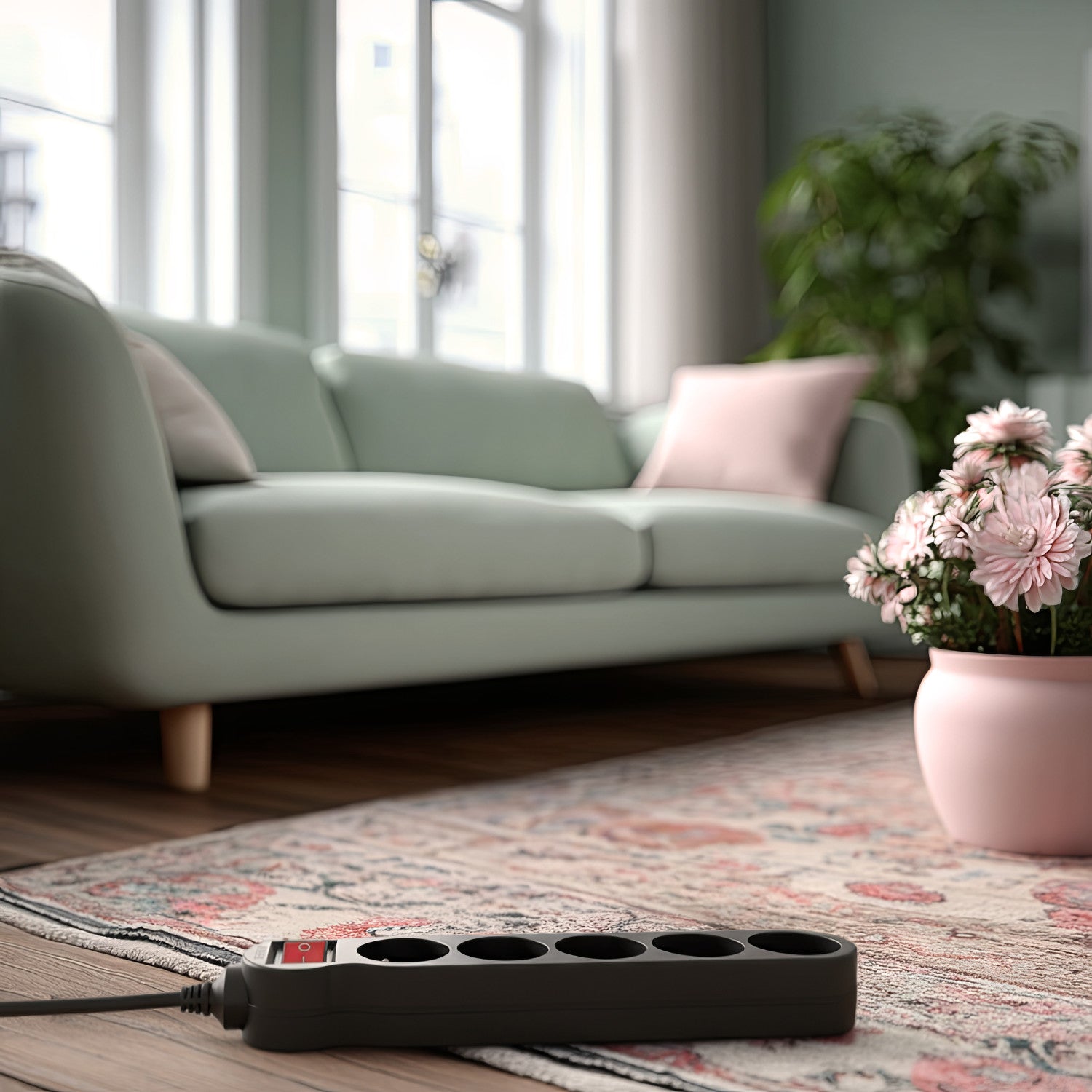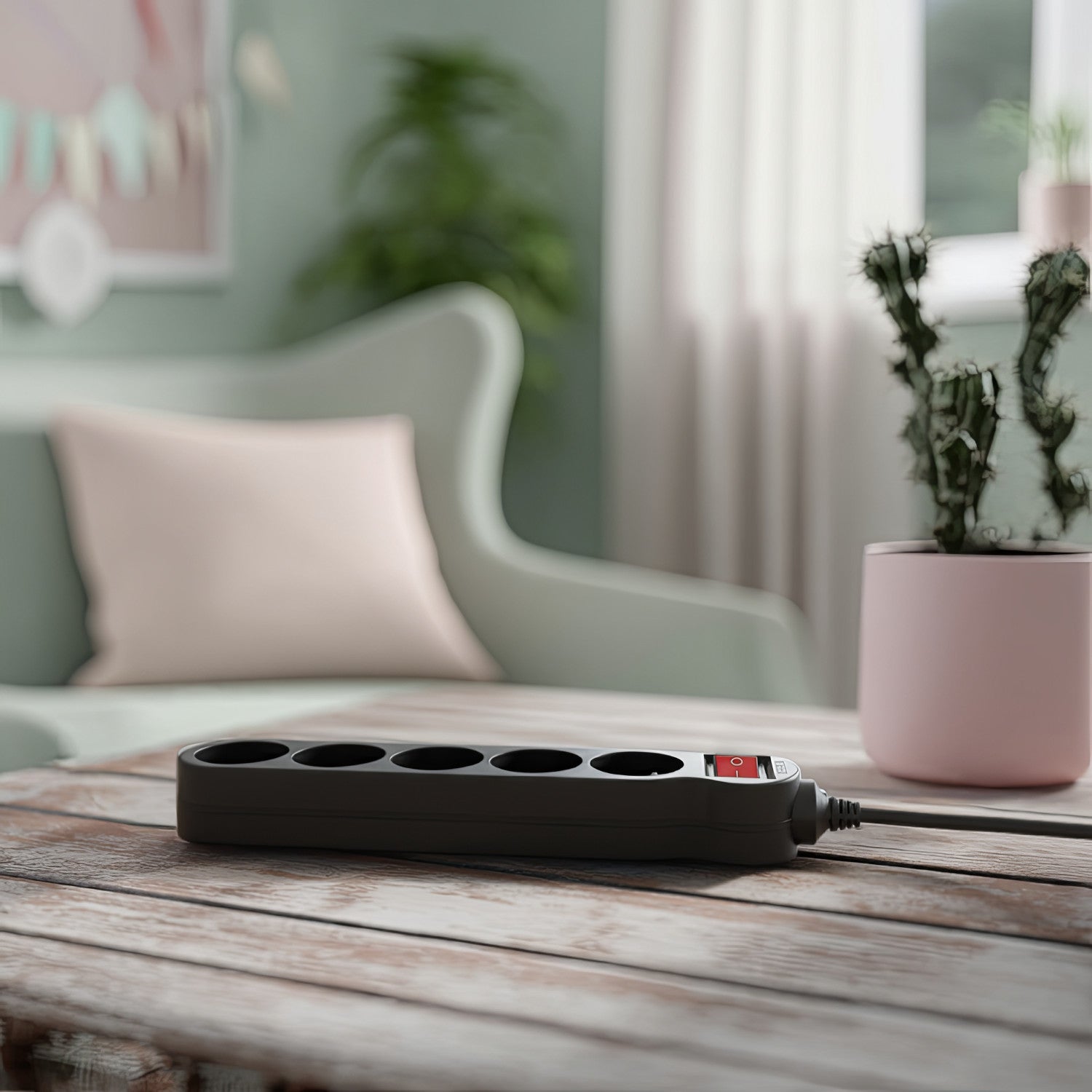 Power strip with 5 sockets, allows you to connect as many as five full-size plugs at the same time.