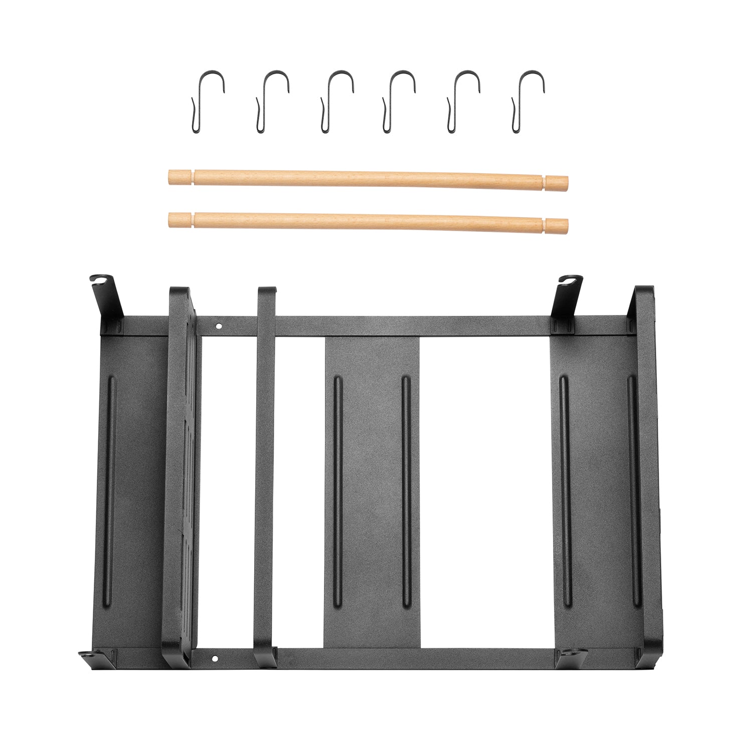 - 6 detachable hooks for hanging cups, glasses, or kitchen utensils