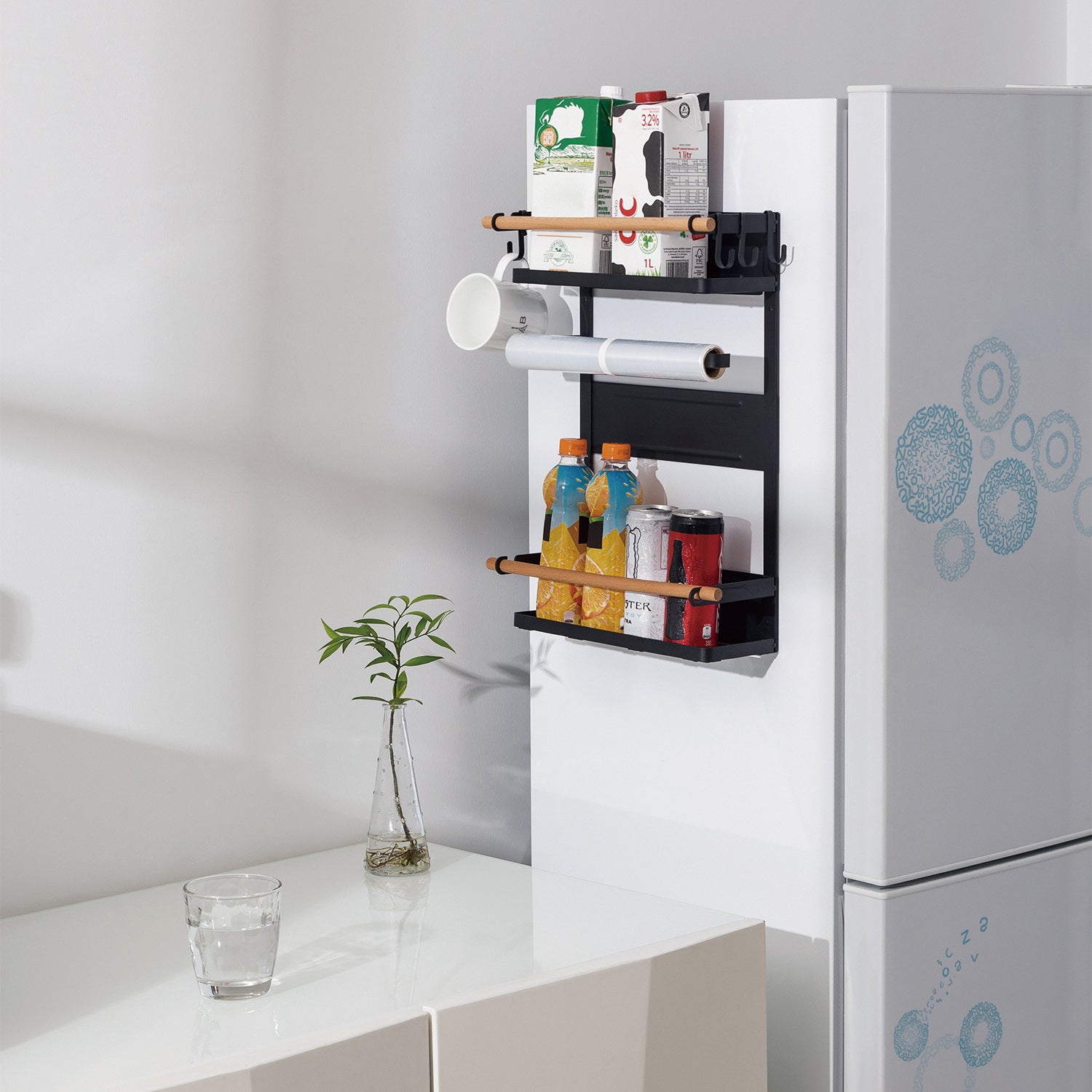 - Magnetic shelves suitable for hanging on the refrigerator or other metal surface such as a washing machine