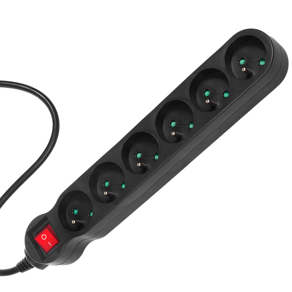 Power strip extension cord 6 outlets with black plugs 1,5m Maclean Energy MCE225 surge protection 2300W