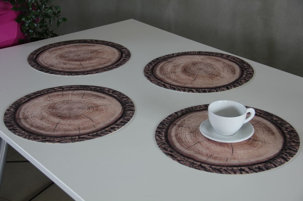 Bertoni table mat set, comprising 4 round mats, each measuring 33 cm in diameter. Elevate your dining ambiance with these chic Robina-colored mats, adding a dash of style to your table setup.