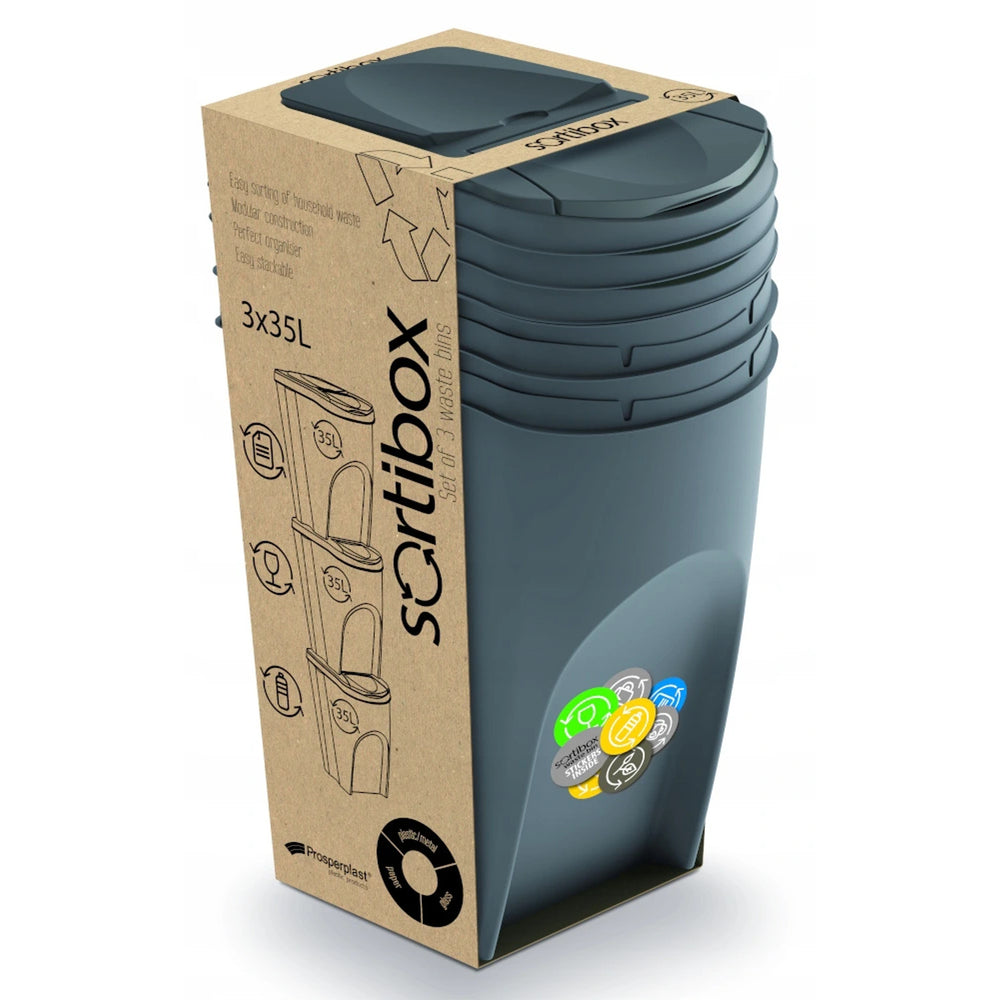 Sortibox 3x35L Grey Recycling Bin Set – Efficient Waste Sorting Solution