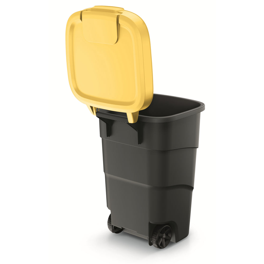 Wheeler 95L Wheelie Bin Trash Can With Wheels And Lid Large Universal Garbage Trash Outdoor Plastic Anthracite and Yellow