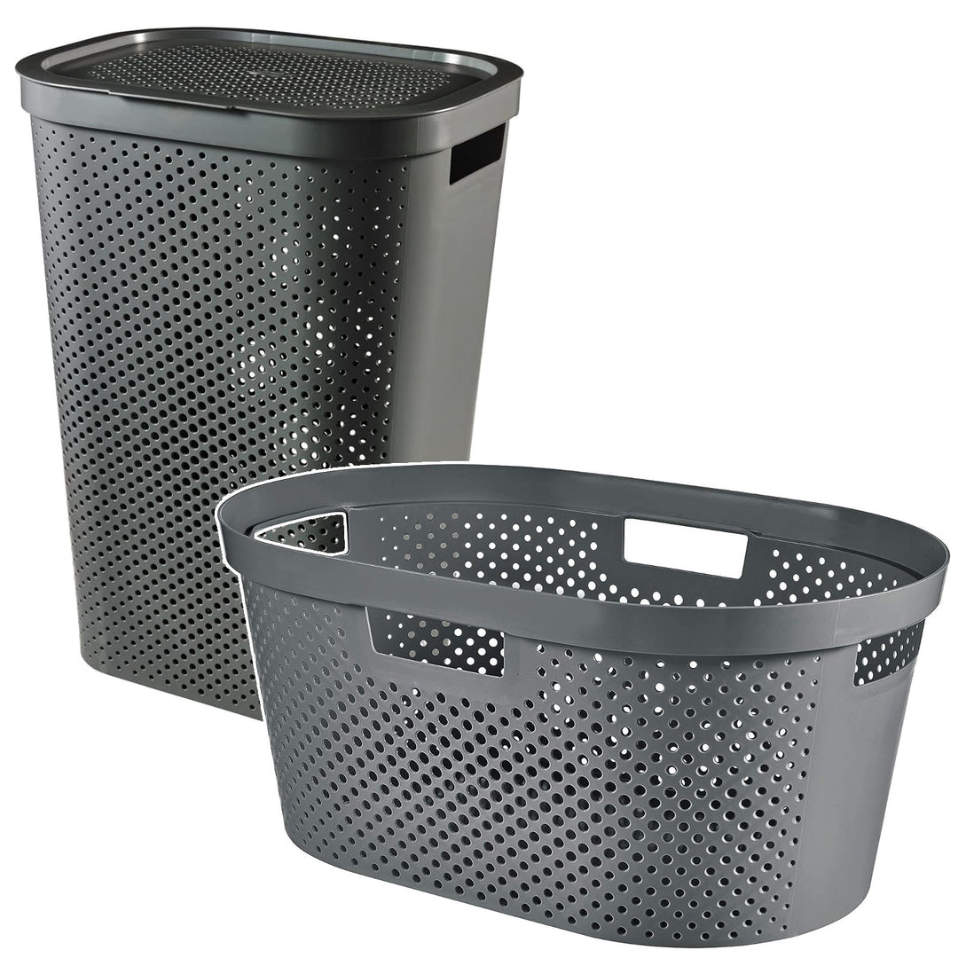 Curver Infinity Recycled mangle / laundry basket, Capacity 40L, Dark Grey, 100% recycled, 245675 + Curver Infinity Recycled 60L laundry basket
