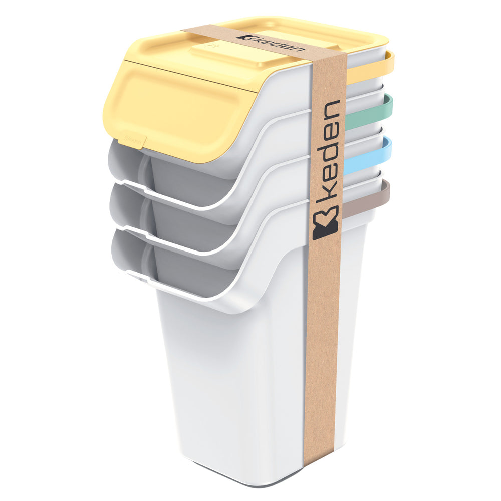 Keden Sortibox 4 x 25L Sorting Waste Bin Set of 4 Recycling Trash Can Segregation Bins with Coloured Lids