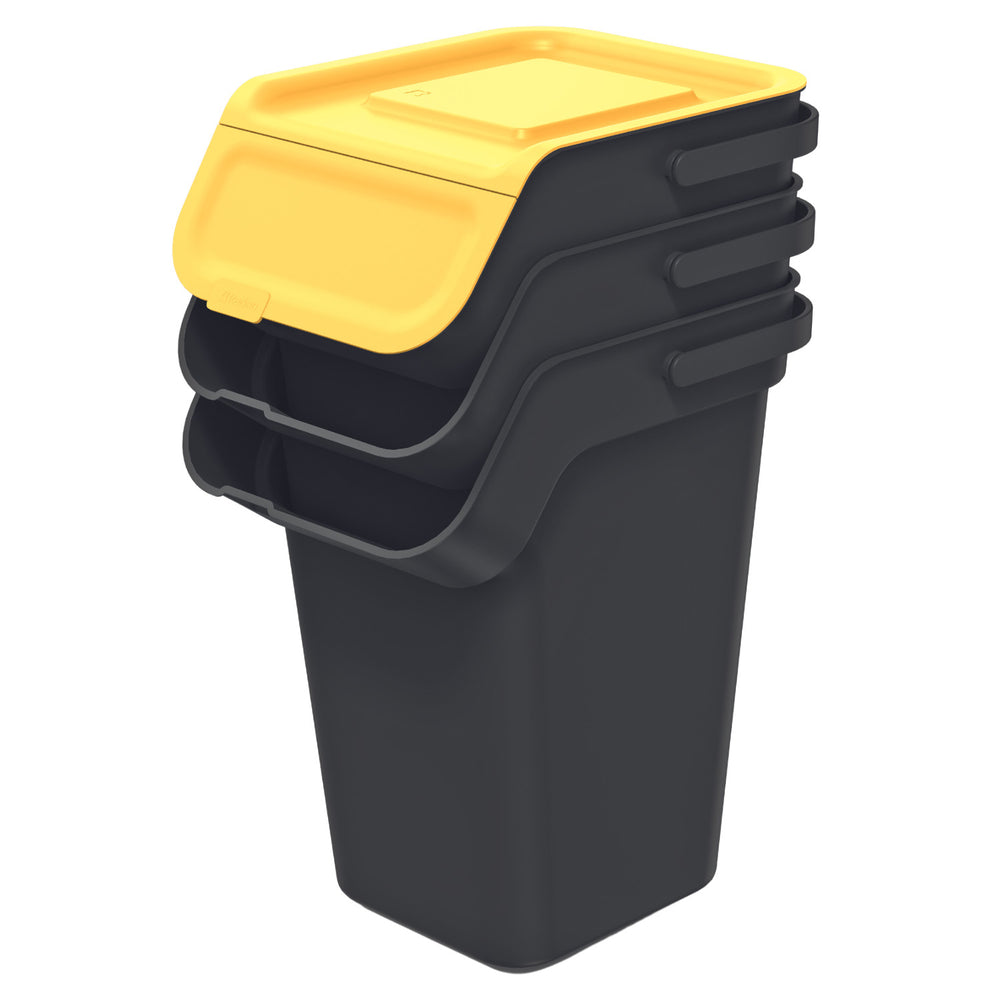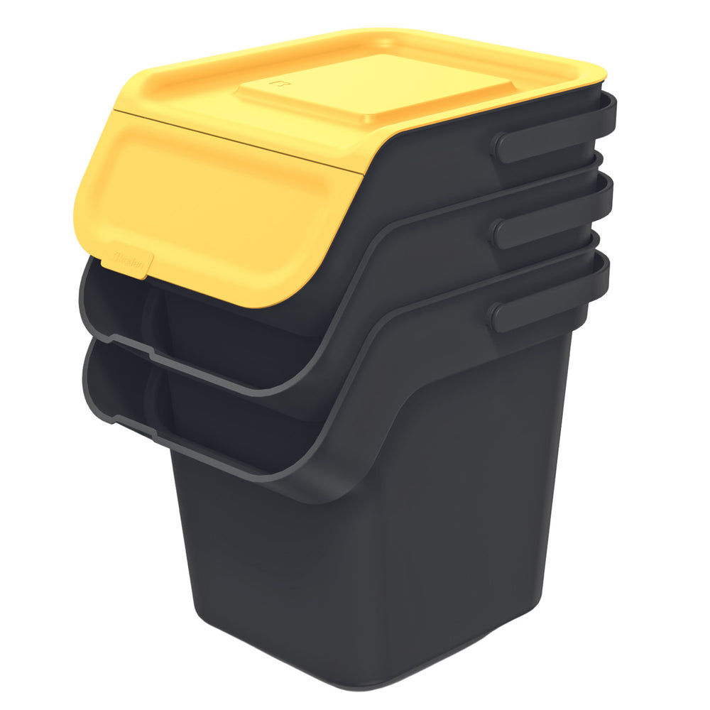 Keden Stackbox 3x 20L Recycling Sorting Waste Bin Set 3-Piece Black Separation Garbage Trash Can Colour Coded Stay-in-Place Lid