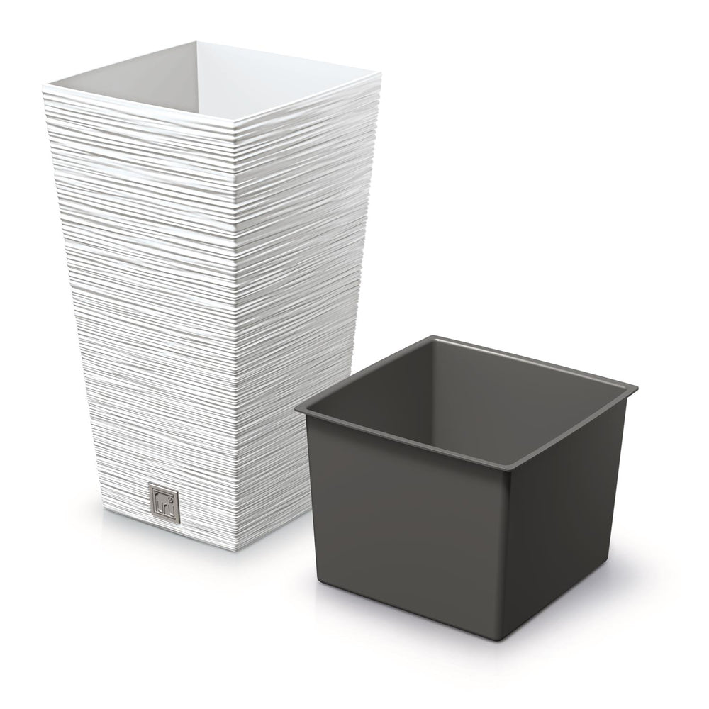 Prosperplast DFSH200-S449 Tall Planter Flower Pot with Insert 11.4L White Colour 20x20x38cm Indoor Outdoor Garden Home Patio Balcony Weatherproof