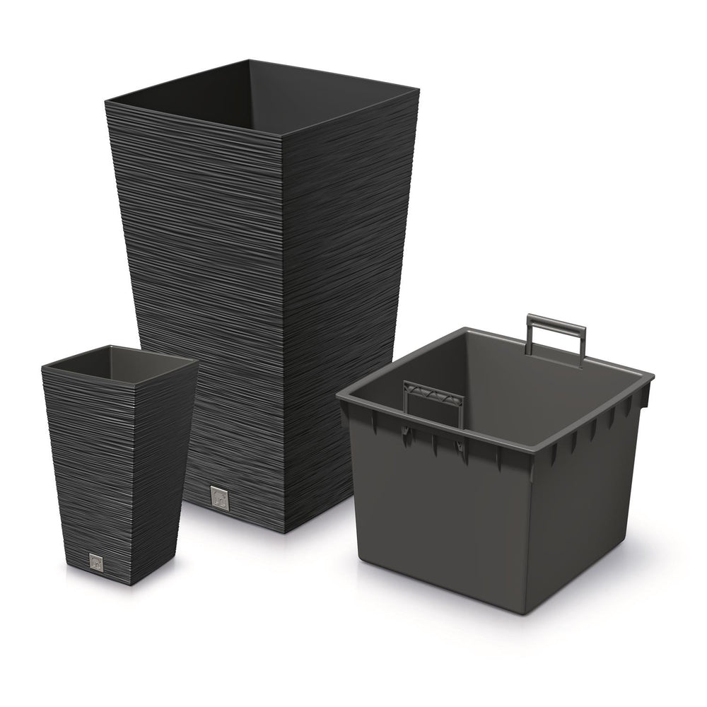 Prosperplast DFSH200-S433 Tall Planter Flower Pot with Insert 11.4L Anthracite Black Colour 20x20x38cm Indoor Outdoor Garden Home Patio Balcony Weatherproof