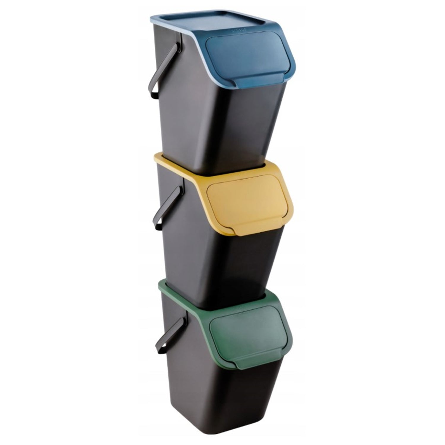 Set of 3 Sorting Waste Bins 3x 25L Coloured Flaps Lid Trash Garbage Recycling Segregation Stackable Black
