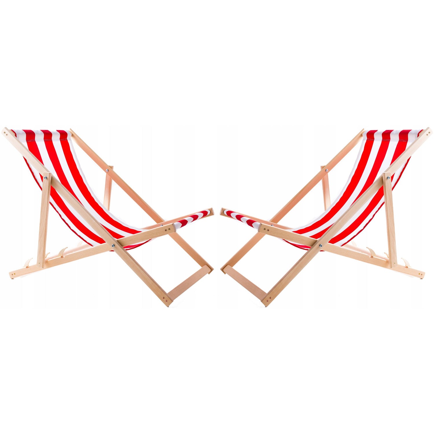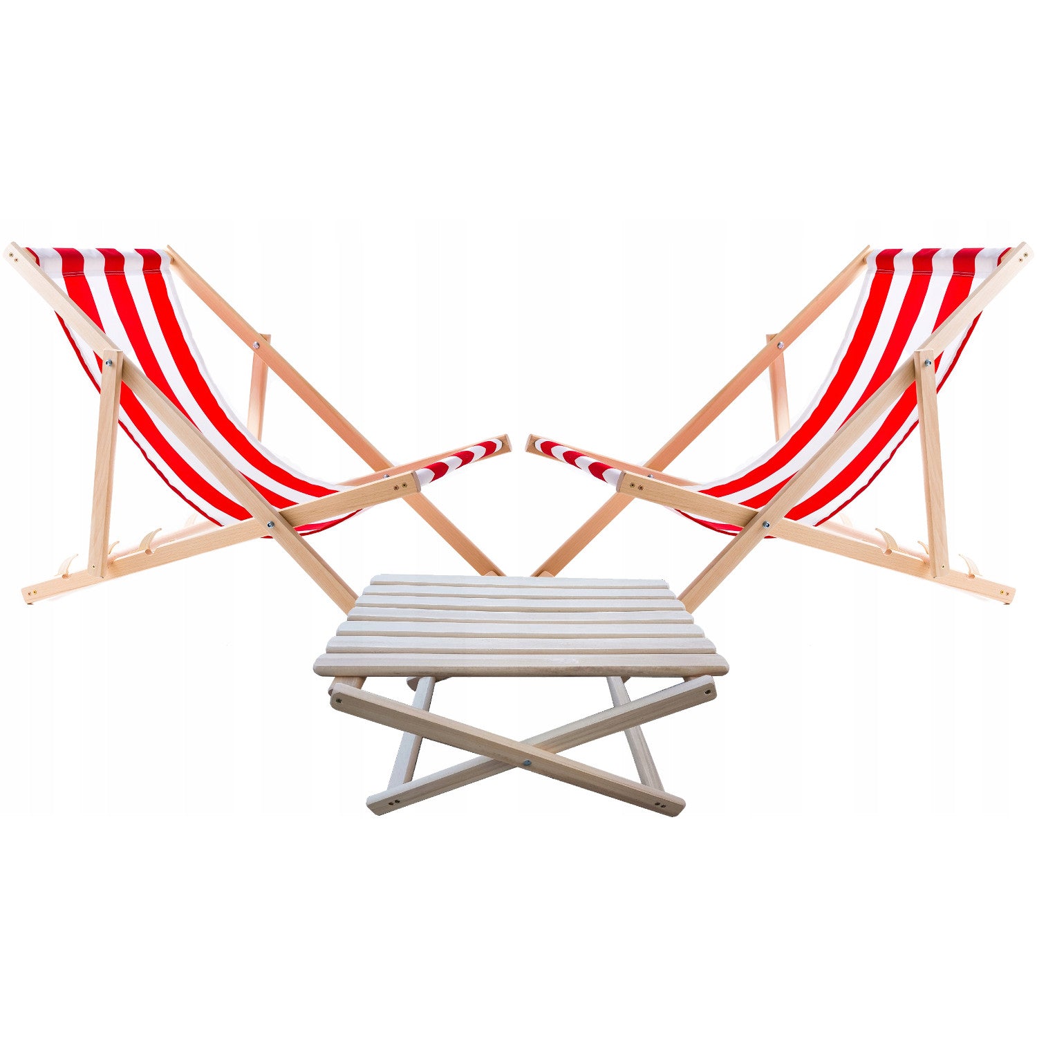 Set of 2 beach chairs, red stripes + wooden coffee table Woodok