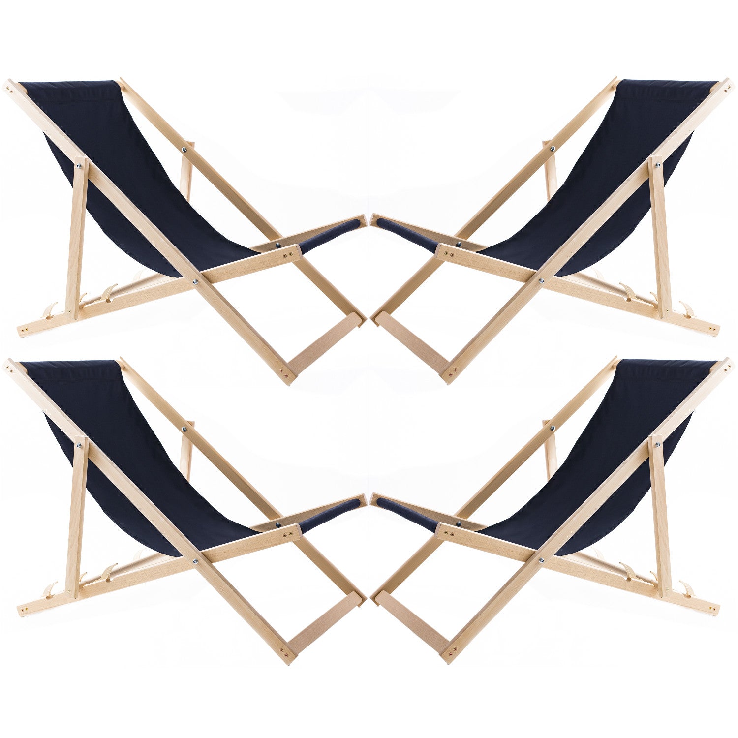 Set of four deckchairs, navy blue, Woodok, assembled