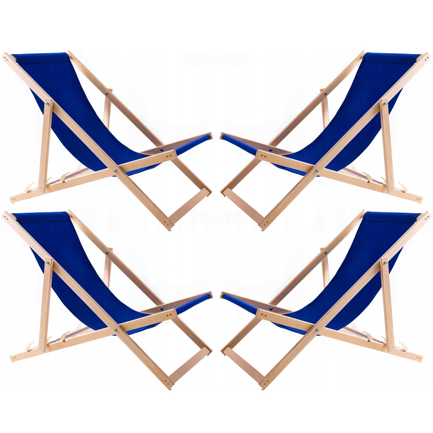 Set of four recliners, lounger chairs, blue, Woodok, assembled