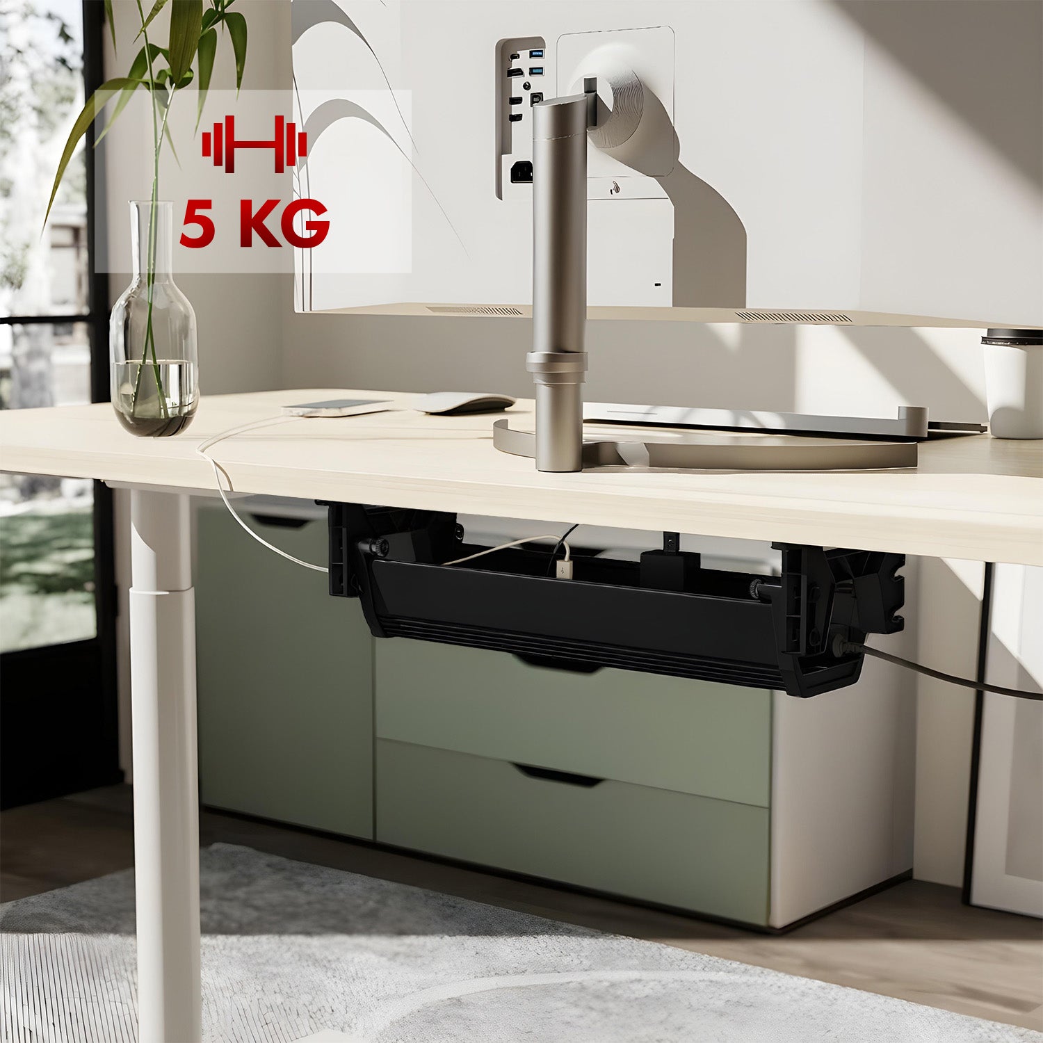 The sturdy design provides a maximum load of up to 5 kg, making it also suitable for heavier power supplies or power strips. Aesthetically pleasing, neutral design makes the MC-106 organizer fit discreetly into most desks, without disturbing their appearance. It is an ideal solution for those who value order, functionality and aesthetics in the workplace.
