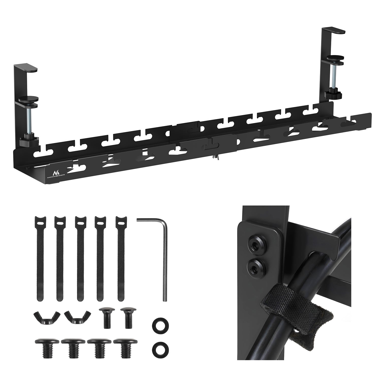 Keep your workspace neat and tidy with the under-desk cable strip organizer. This practical holder, with an adjustable length from 433 to 728 mm, allows you to fit a variety of countertop sizes and power strip lengths. It allows you to organize cables and fix the power strip without drilling or permanently interfering with the furniture. Thanks to the clip-on mounting system, it can be easily attached to the countertop and also quickly removed or moved if necessary. The organizer is great for the home office, gamer's room or workplace.