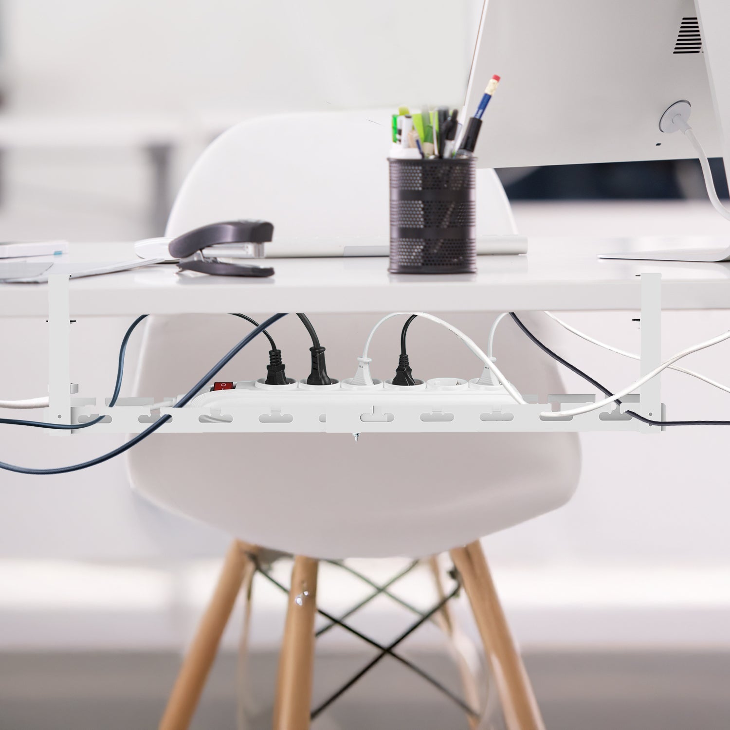 Keep your workspace neat and tidy with the under-desk cable strip organizer. This practical holder, with an adjustable length from 433 to 728 mm, allows you to fit a variety of countertop sizes and power strip lengths. It allows you to organize cables and fix the power strip without drilling or permanently interfering with the furniture. Thanks to the clip-on mounting system, it can be easily attached to the countertop and also quickly removed or moved if necessary. The organizer is great for the home office, gamer's room or workplace.