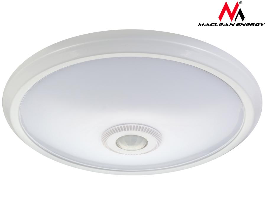 Maclean MCE309 ceiling lamp with a built-in sensor. Featuring a microwave sensor and PMMA diffuser, it supports a maximum load of 25W and is IP20-rated for durability.