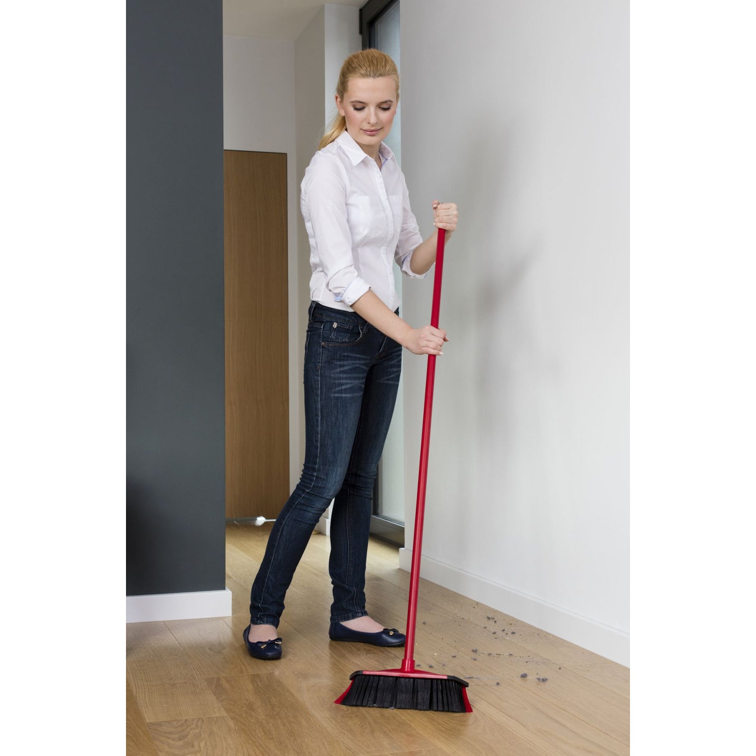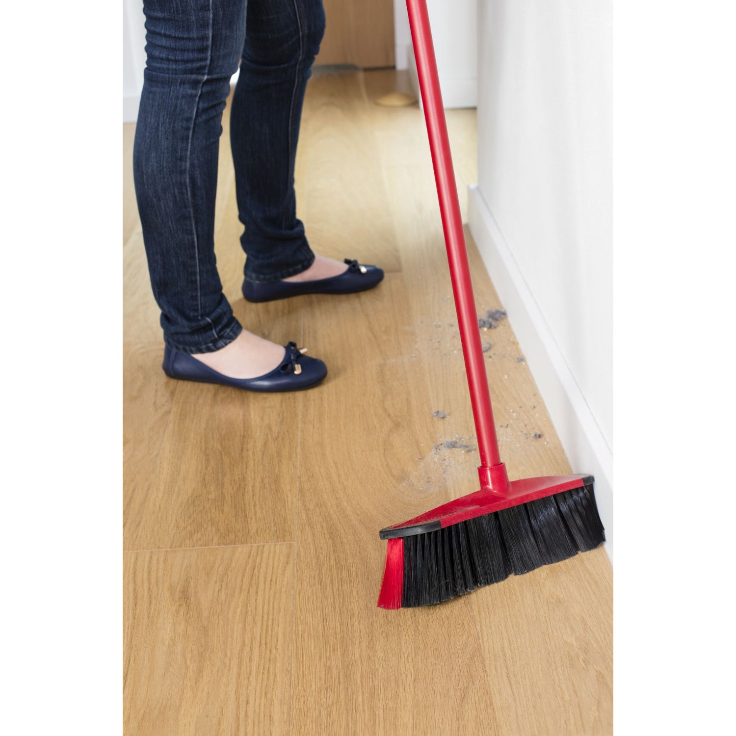 Vileda 3-Action brush perfectly collects dust, hair, dander and all kinds of dirt. It has black and gray bristles. The former perfectly collects hair and dander, while the latter - dust. The red bristles, on the sides of the broom, perfectly collect dirt from hard-to-reach places, such as corners. The brush is also equipped with rubber trim on the cap, so you don't have to worry about accidentally damaging the wall while sweeping.
