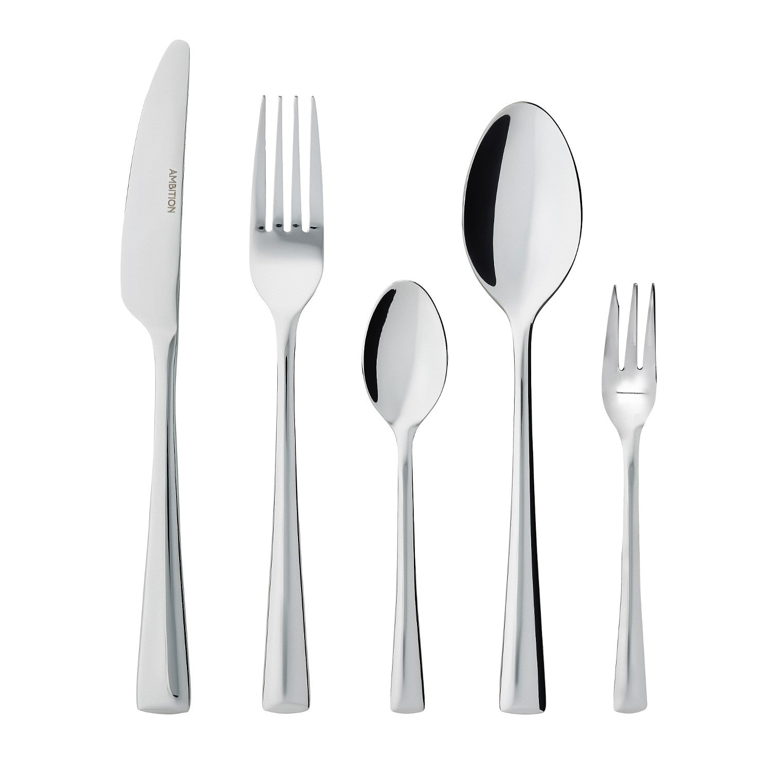 The Siena cutlery set from the renowned Ambition brand is unique in every way. Consisting of 60 pieces, it was designed with the comfort of 12 people in mind. The Siena line is characterized by hand polishing, which gives the cutlery a mirror-like surface.