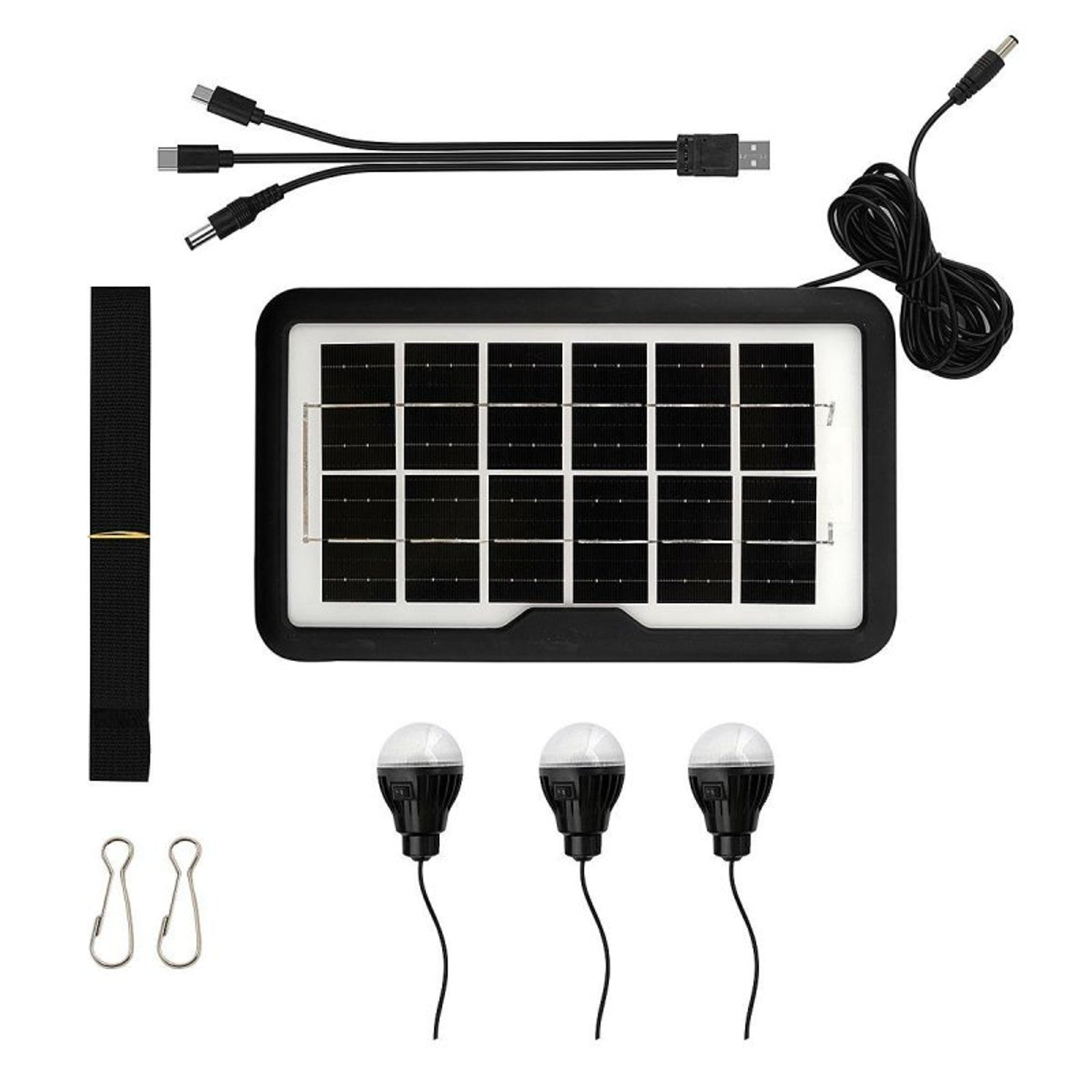 - Multi-functional survival kit, equipped with a powerbank, solar panel, lamp, flashlight, LED lights and speaker+radio