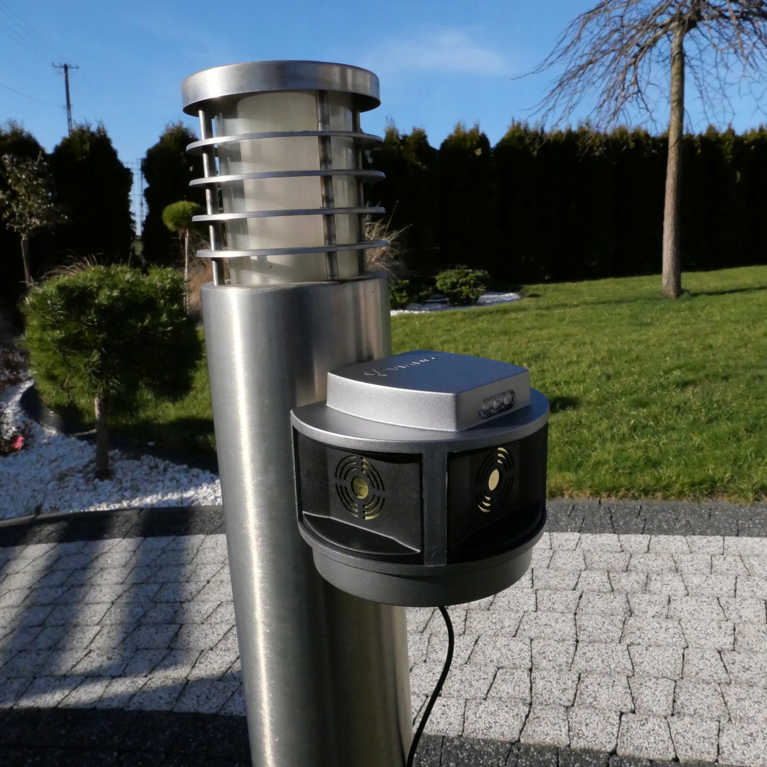 The device can operate in the mode of the emission of sound and ultrasonic waves alone, which are very bothersome to pests. These waves negatively affect the nervous system of the pests, causes a sense of discomfort and fear, as a result of which they flee from the protected area. Or additionally in RADAR mode, where the built-in motion sensor will automatically activate the strobe lamp (five rapid flashes per second) as soon as an unwanted pest enters the monitored area.