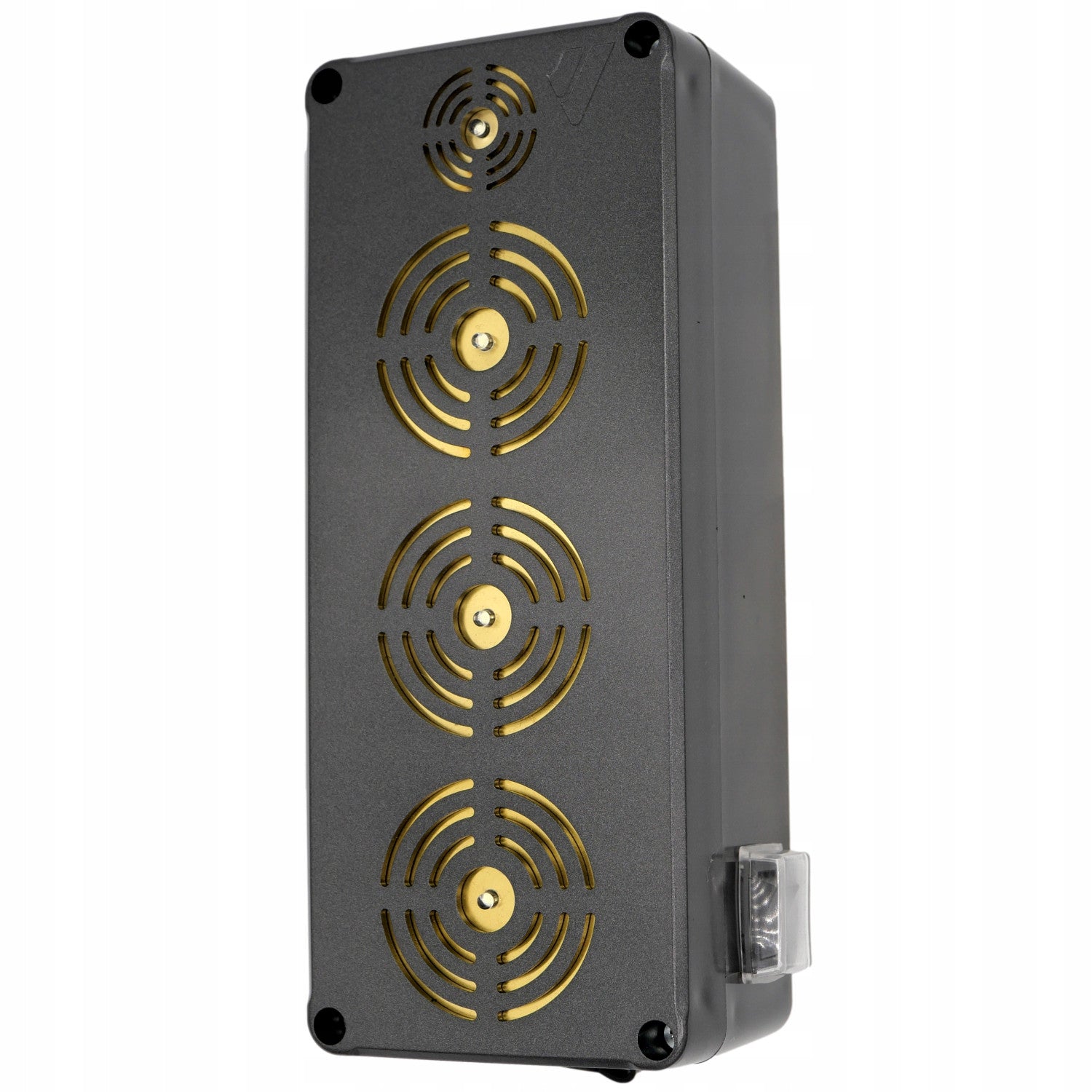 The device has installed as many as four piezo speakers - three 50mm diameter and one 35mm diameter, as well as four high-brightness LEDs. The whole is complemented by an airtight housing with IP65 protection class, which allows the repellent to be used both indoors and outdoors. The Polish device was designed for the climatic conditions prevailing in our country - it is resistant to sunlight, rain, frost and wind.