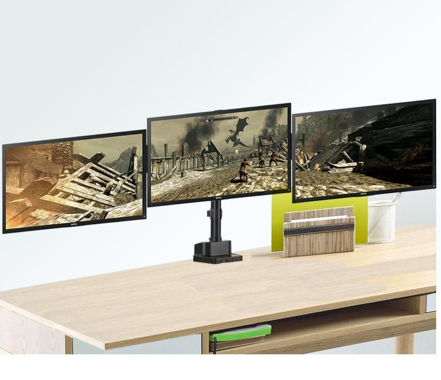 Maclean MC-691 TRE Triple Stand 3 Monitors Bracket Desk Mount Holder Table Mounting Arm 13" - 27" 8kg
