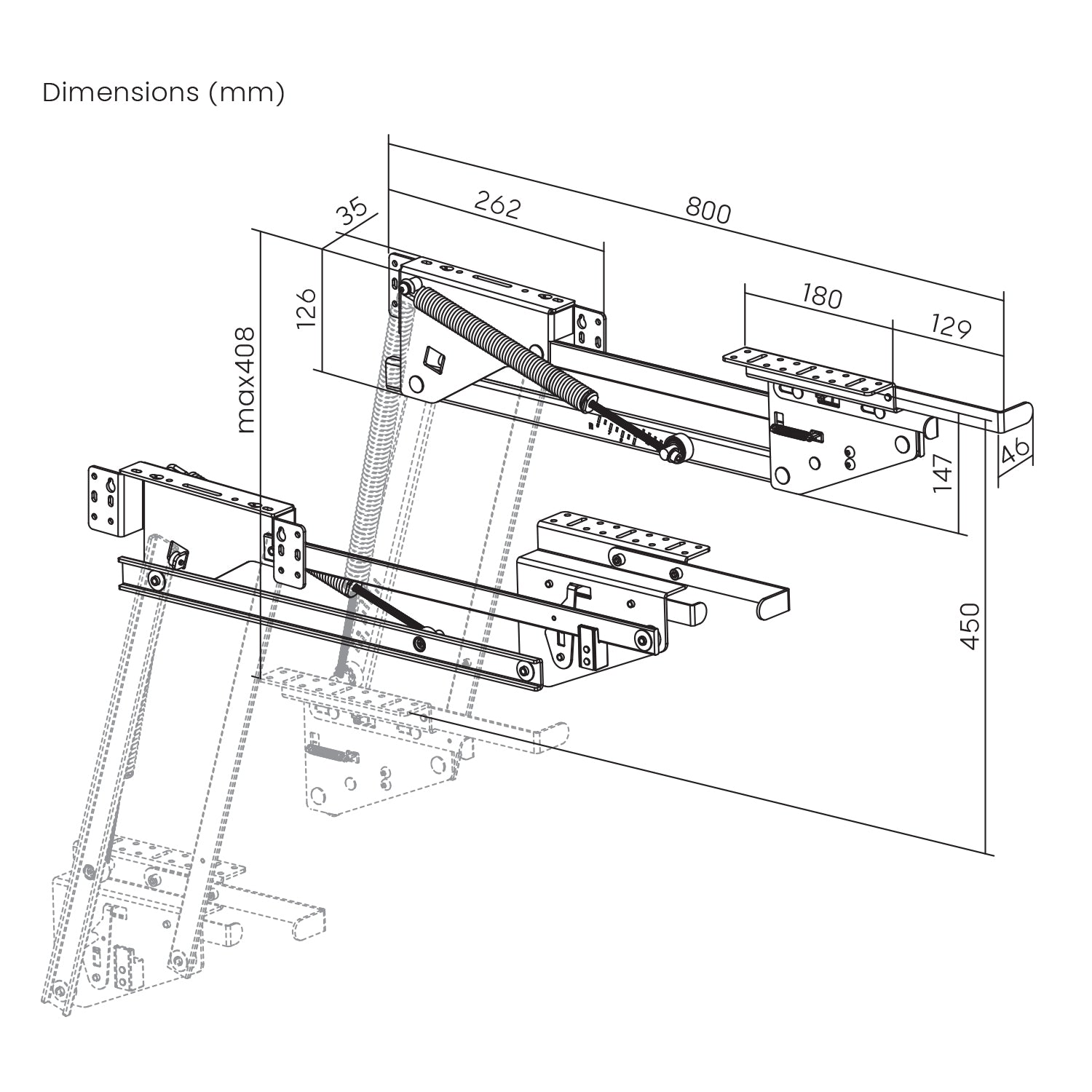 - Robust mechanism ensures smooth and safe lowering and raising of the shelf
