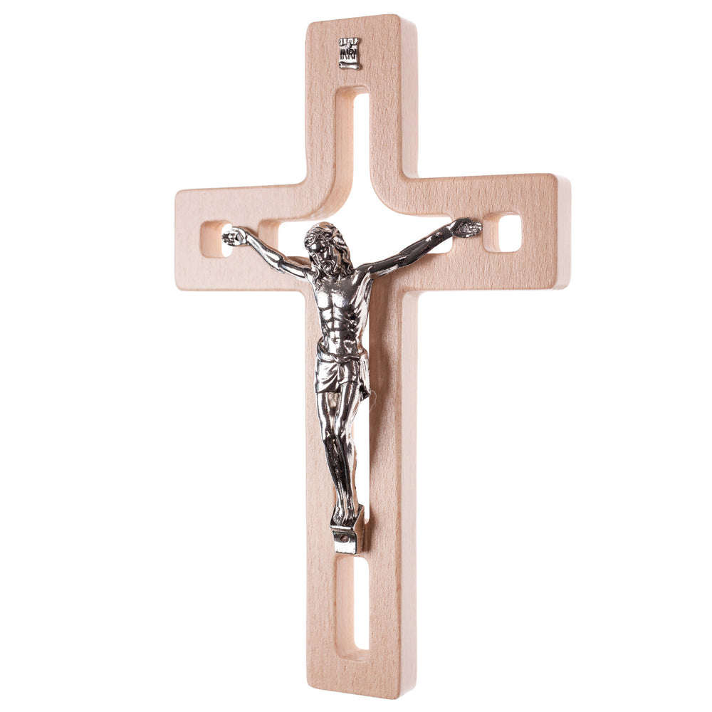 C07.18.01 Modern Hanging Cross Wooden Natural Beech Wood 18x12 cm Crucifix Christian Gift Idea