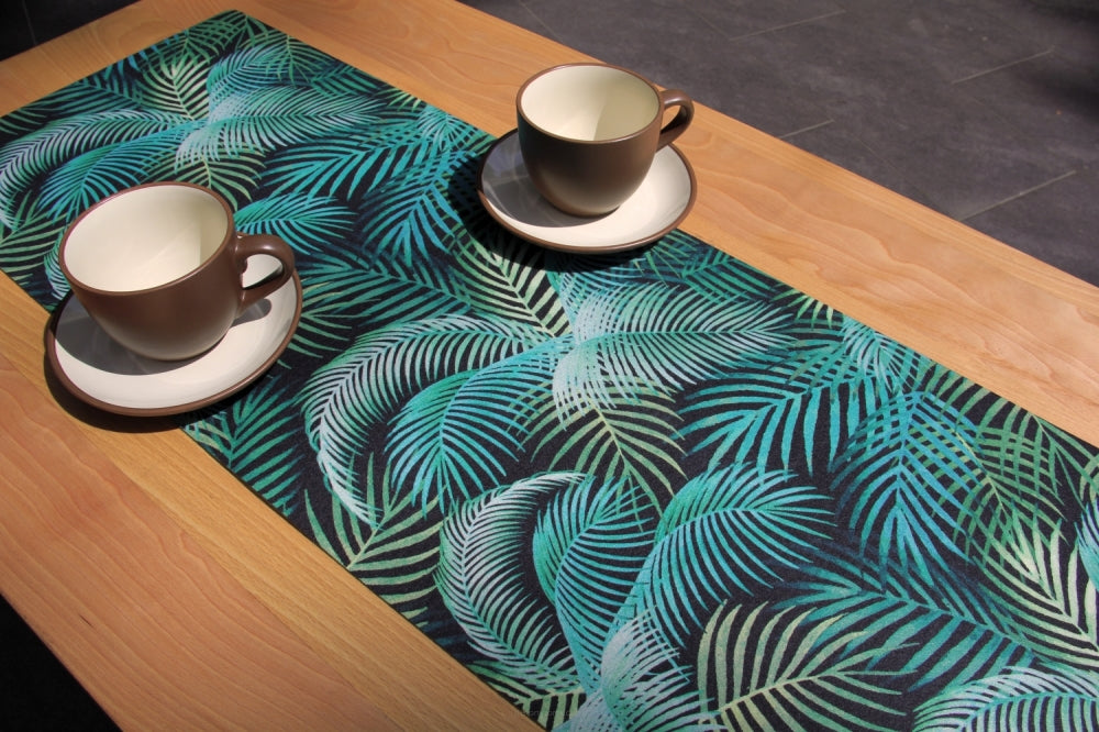 Bertoni table runner, eco-friendly felt, dimensions 95x33cm, Lambada Green print pattern