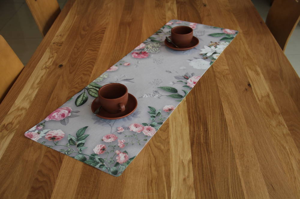 Bertoni table runner, eco-friendly felt, dimensions 95x33cm, Melanie Grey print pattern
