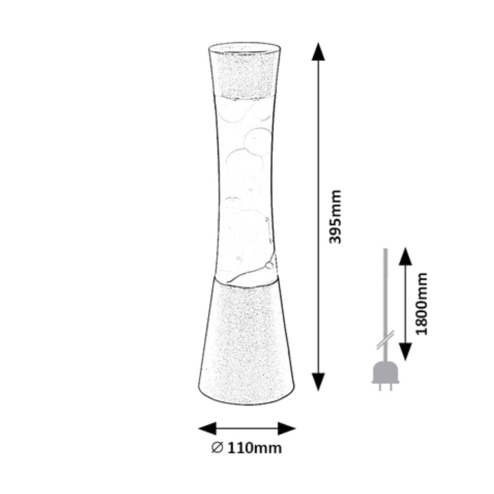 Introducing the Rabalux Glitter lava lamp: Radiating a warm orange glow, this lamp features mesmerizing glitter swirls, creating a captivating visual display. Powered by a 25W bulb, it combines retro charm with modern flair, adding a touch of enchant