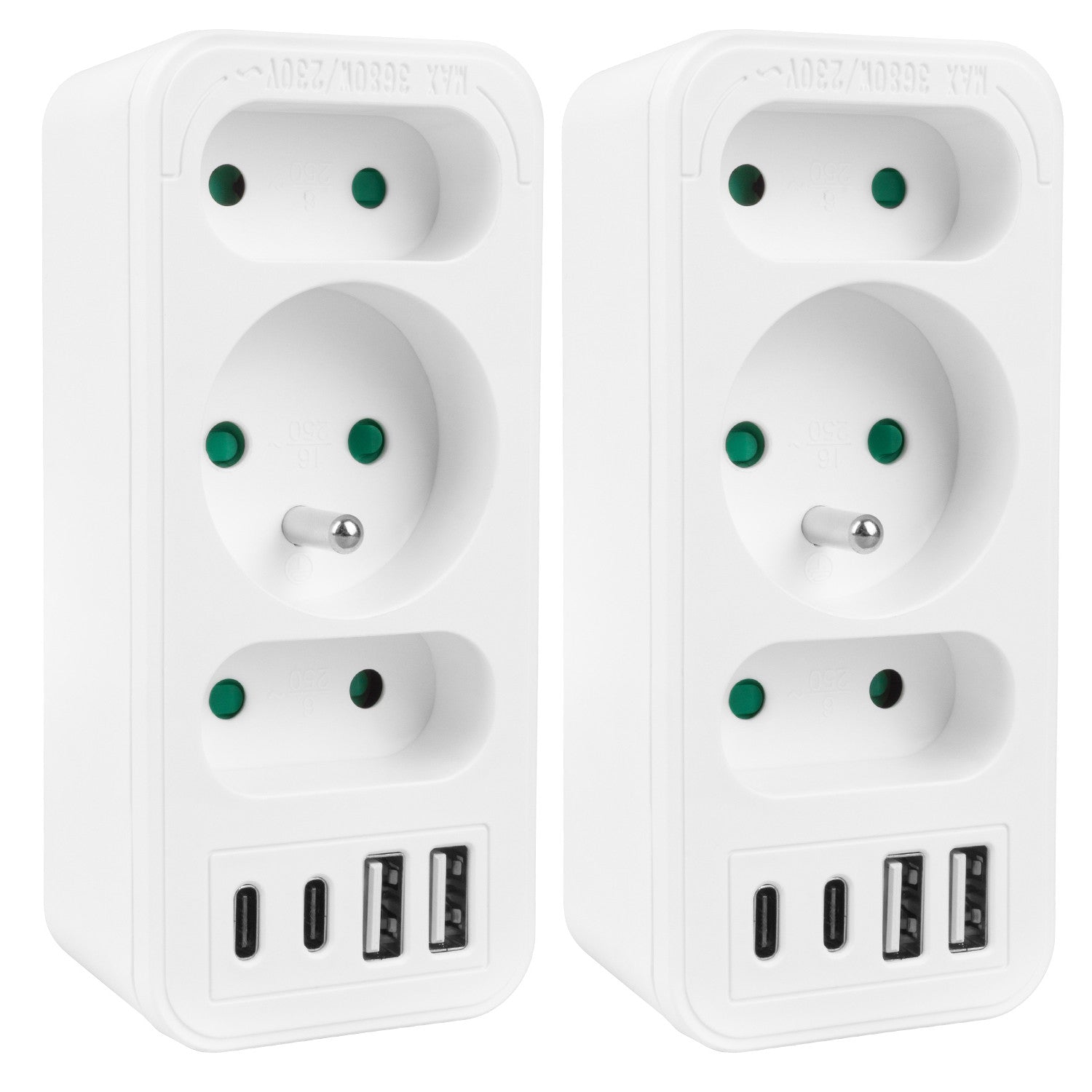 2x splitter 3 sockets 2x USB-A 2x USB-C white