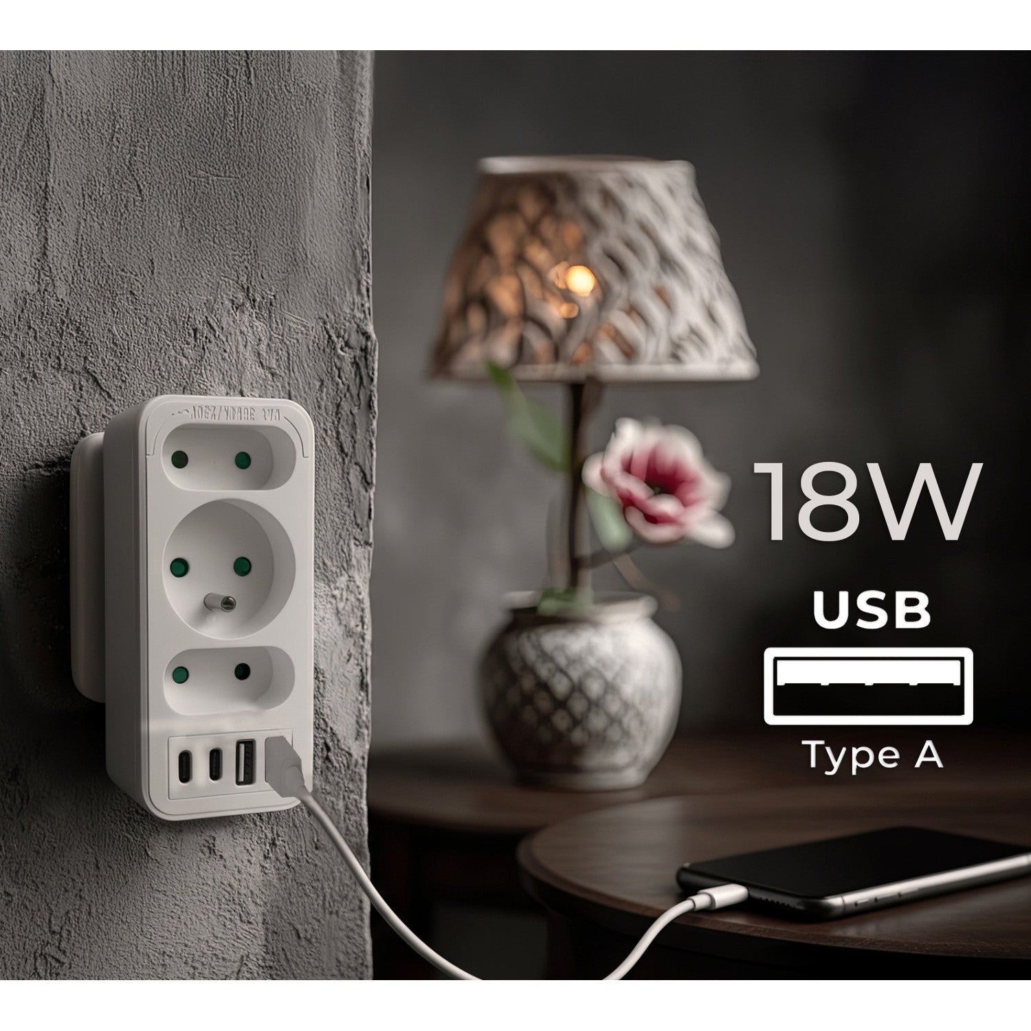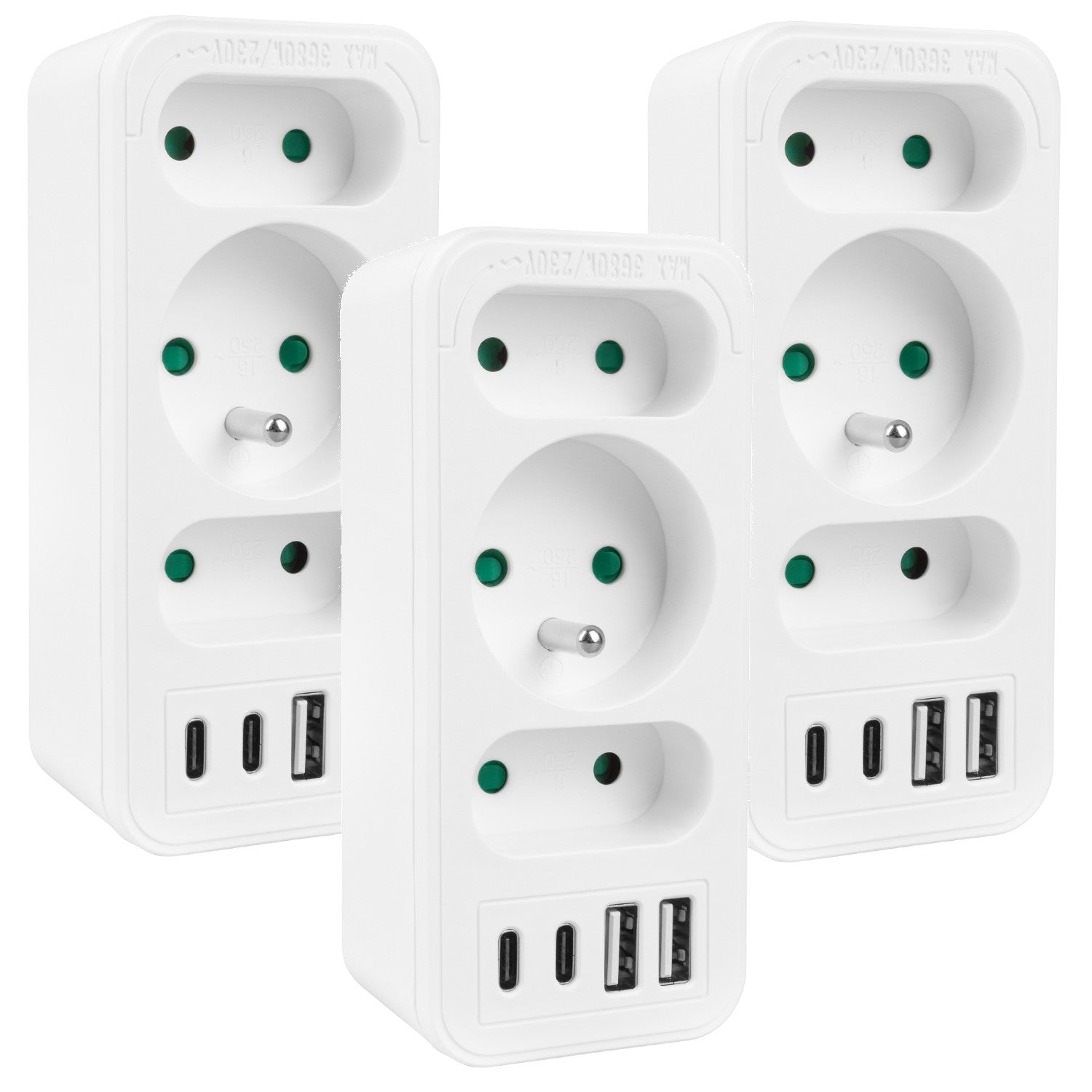 3x splitter 3 sockets 2x USB-A 2x USB-C white