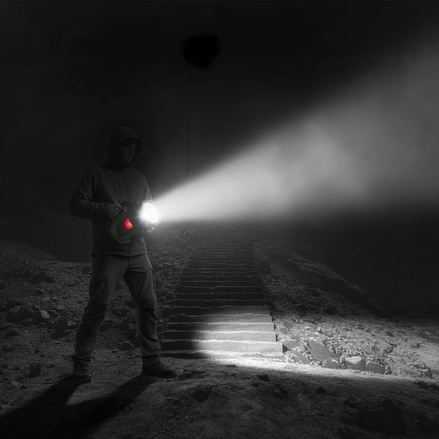 The flashlight is also equipped with 2 side lights where you can select one of two light modes: